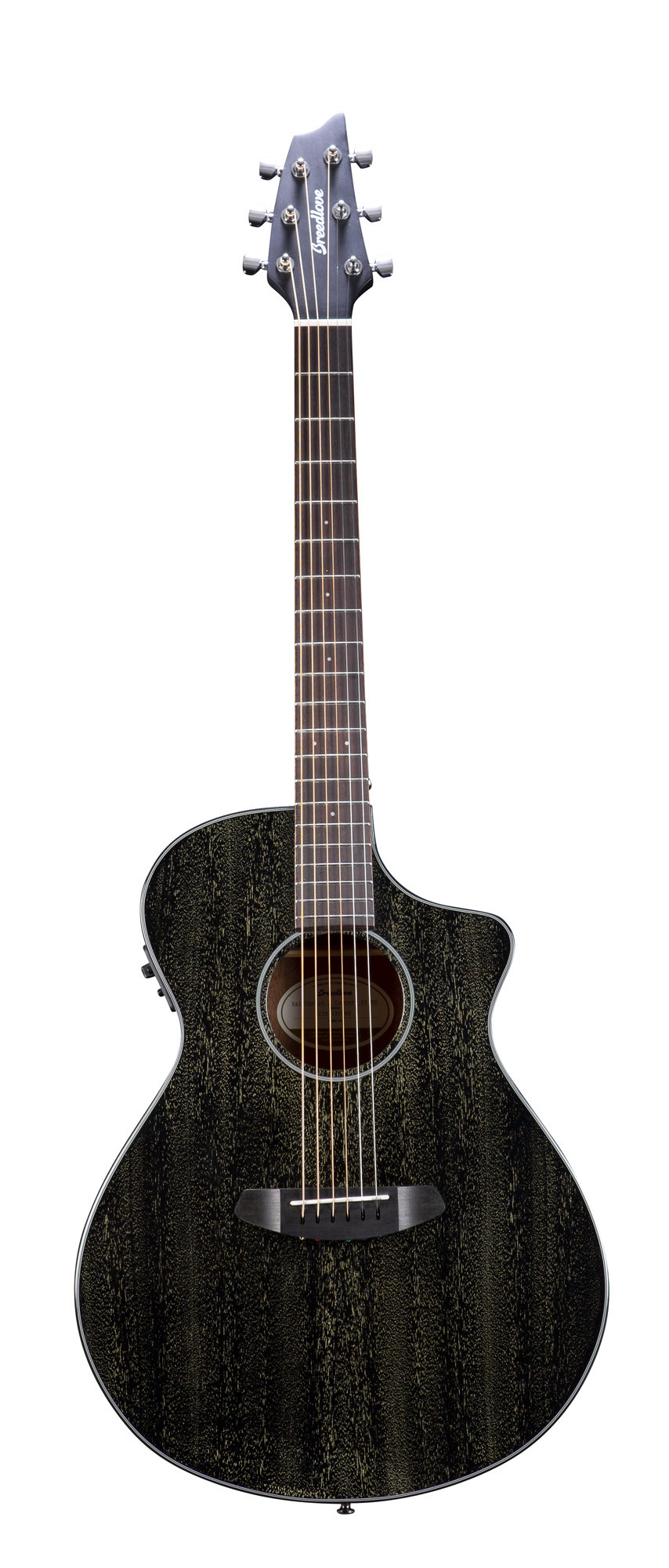 Its mahogany neck, ovangkol fingerboard and bridge, as well as its 43 mm nut, contribute to a comfortable feel. It is also fitted with 20 frets, centered dots inlays, black binding, and PPS nuts. The chromed Breedlove Premium tuners with black buttons ensure precise tuning, and the Fishman Presys I system provides simple and effective amplification.
