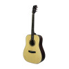 This Dreadnought acoustic guitar combines a spruce top with mahogany back and sides for a classic, balanced design. Its mahogany neck, merbau fingerboard and bridge, as well as its open-pore natural finish, give it a clean, authentic look. It features 20 frets, a 43 mm nut, and oil-bath tuners.
