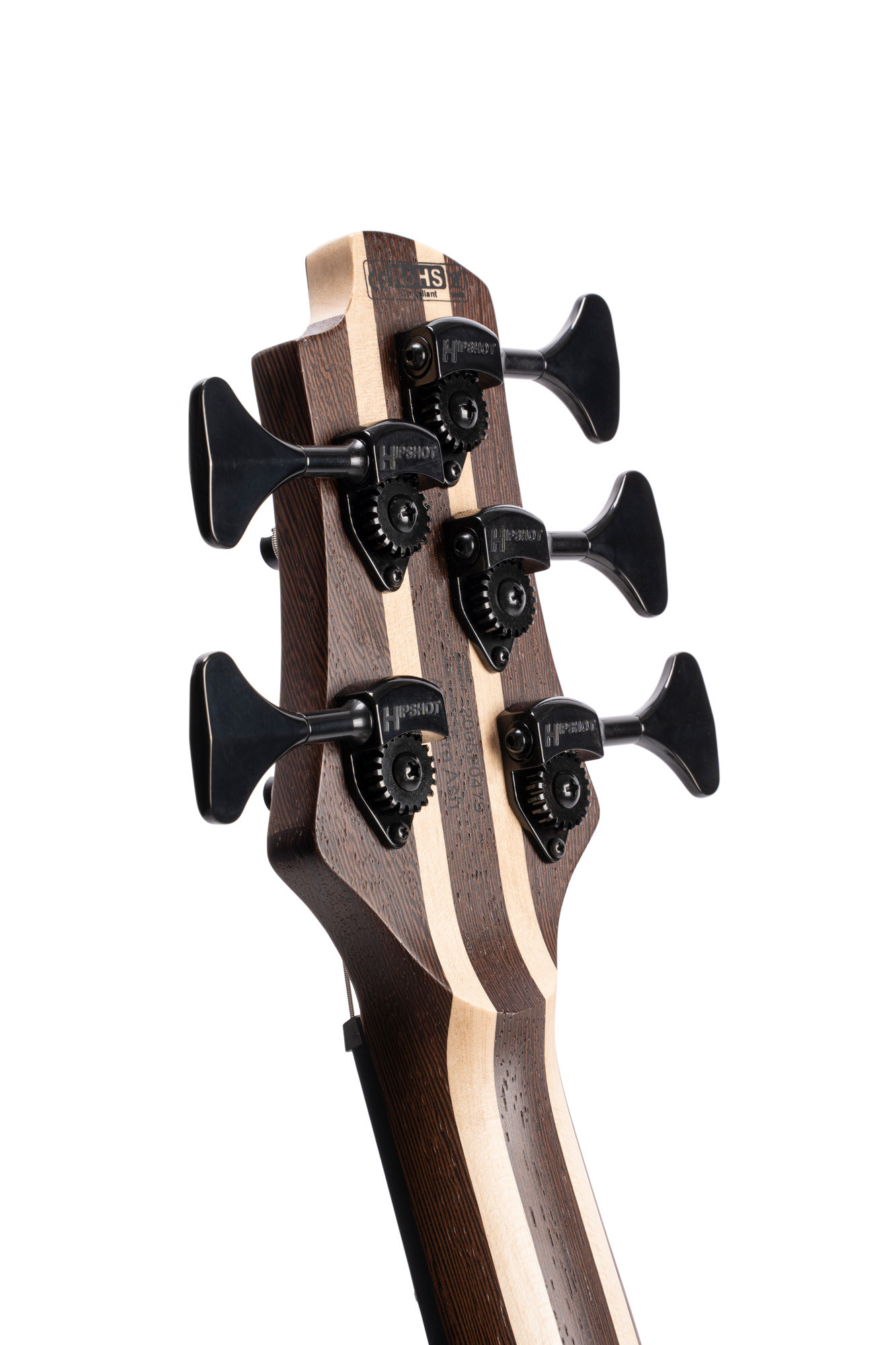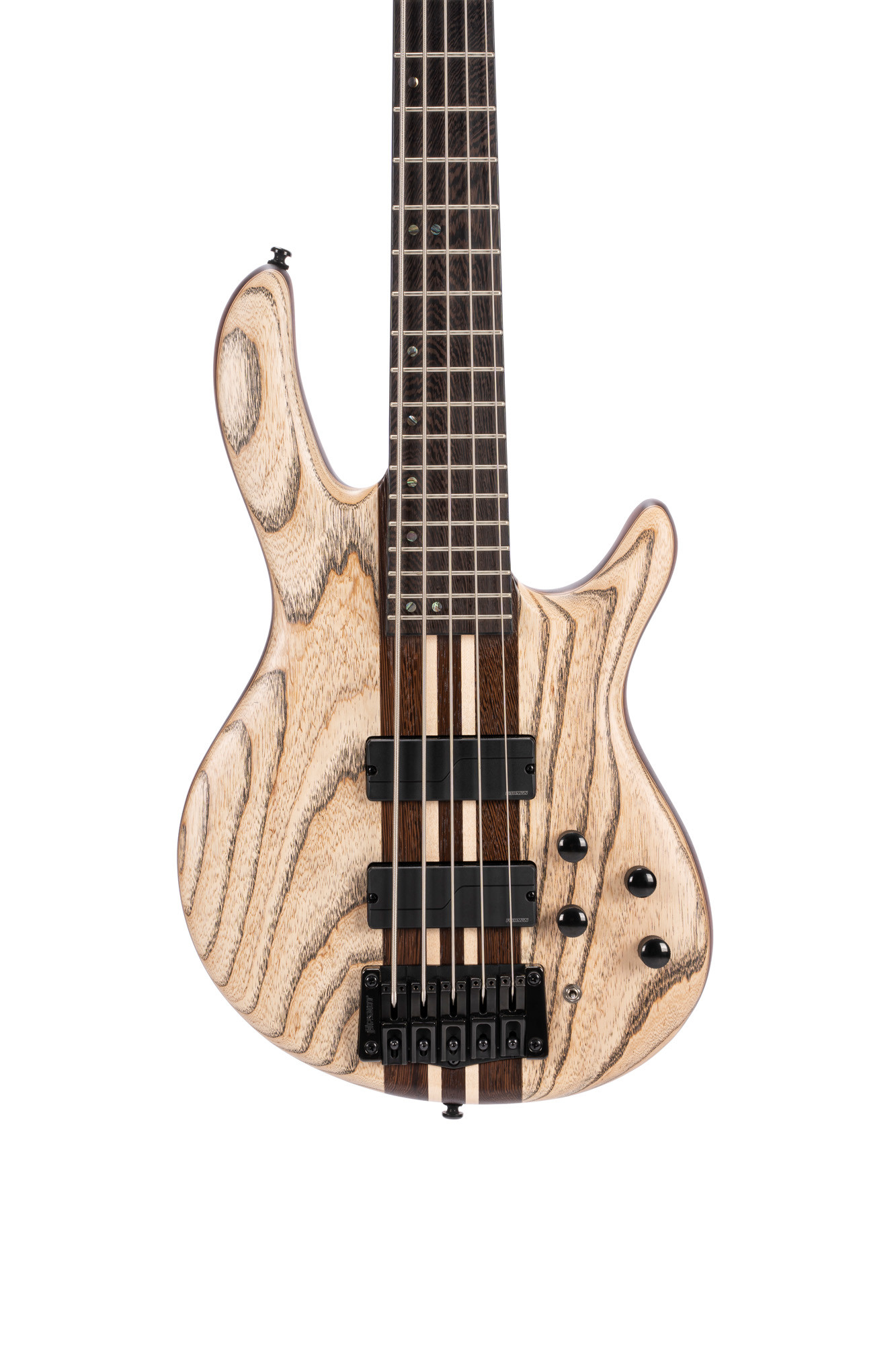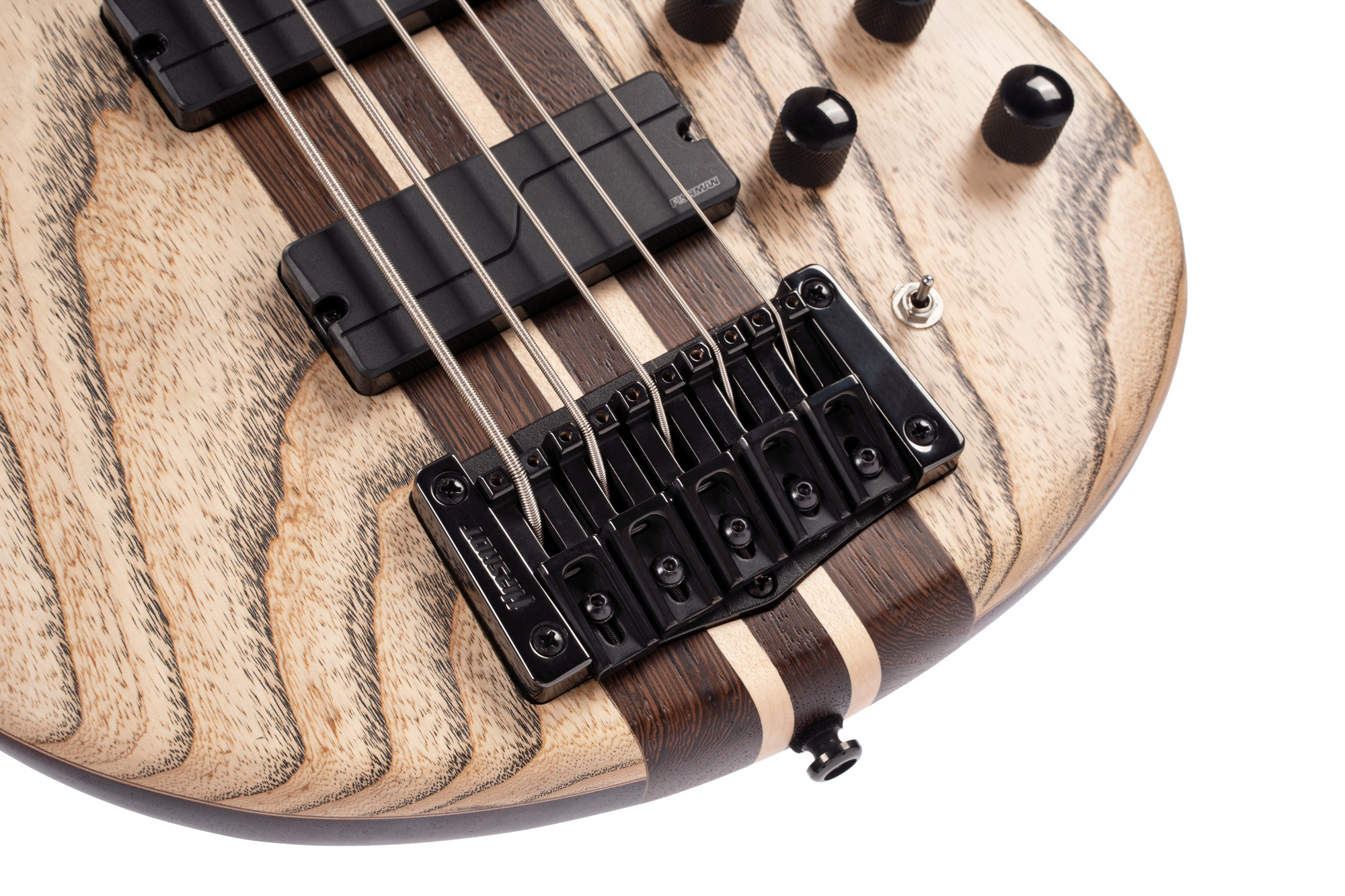 This 5-string bass combines careful construction and high-end components to deliver precise playability and a versatile sound. It features a mahogany body with a sandblasted ash top, a 5-piece maple/panga panga neck-through design, and a panga panga fingerboard with 24 frets.