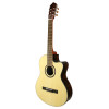 It stands out thanks to the combination of carefully selected materials, its cutaway, 52 mm nut, and Fishman Isys electronics. These features make it a coherent option for those who want a complete instrument, ready for amplified playing and comfortable to use.
