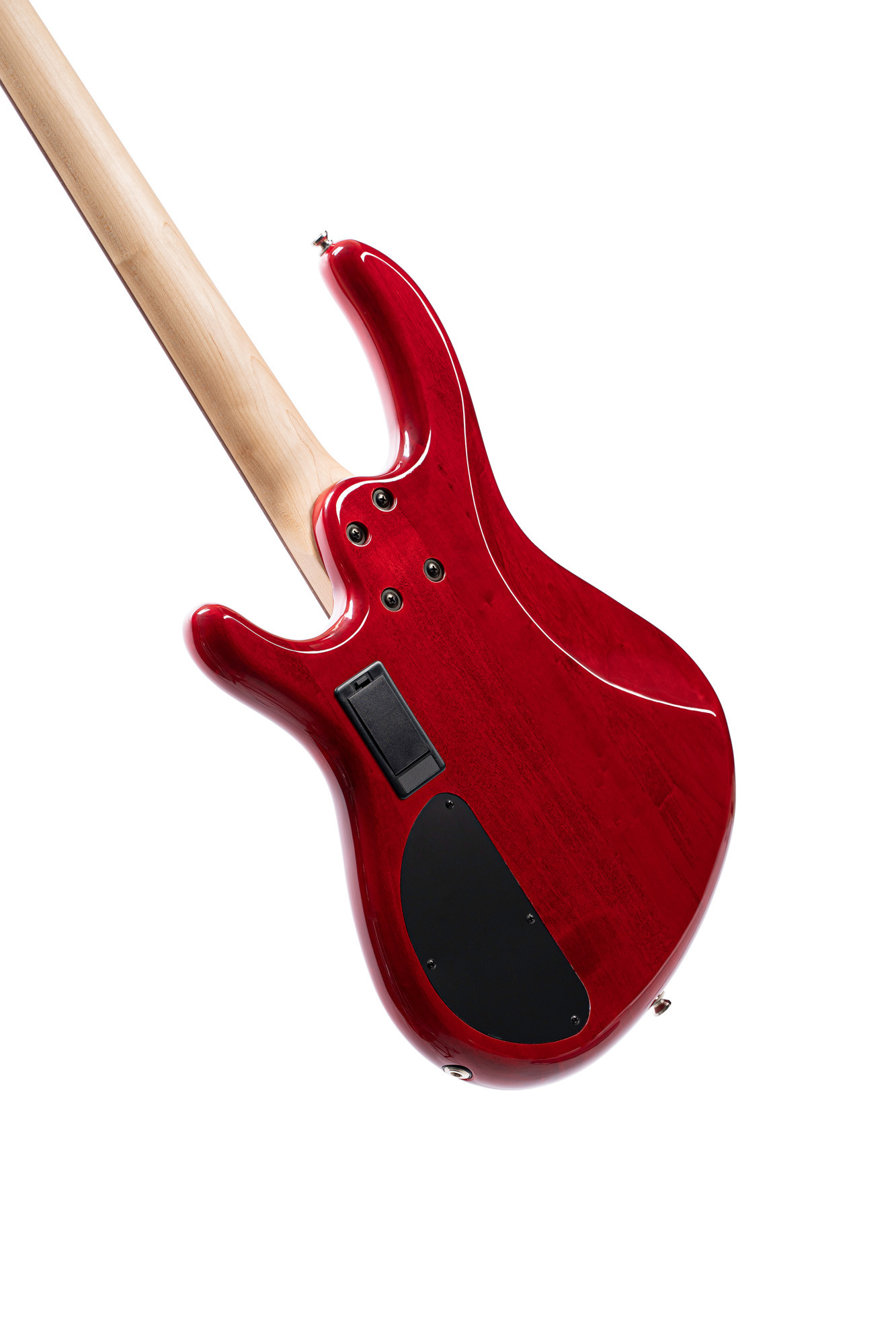 This 4-string model is designed with a poplar body and a maple neck paired with a jatoba fingerboard. It is equipped with PJ Powersound pickups and a 2-band active EQ for precise sound adjustment. Oil-bath tuners and chrome hardware complete the package, while the translucent red finish adds a distinctive style.