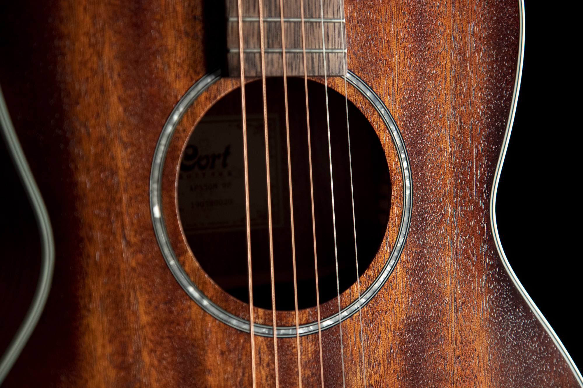 The AP550 adopts a compact and comfortable Parlor shape, designed to offer a pleasant feel and timeless style. Its mahogany top, combined with the mahogany back and sides, contributes to a warm and cohesive aesthetic. The mahogany neck and merbau fingerboard are part of a carefully crafted construction, while the 43 mm nut ensures suitable playing comfort. The natural open-pore finish highlights the authentic look of the wood. With its 20 frets, merbau bridge, white binding, and slotted headstock, this instrument presents a balanced and elegant design.