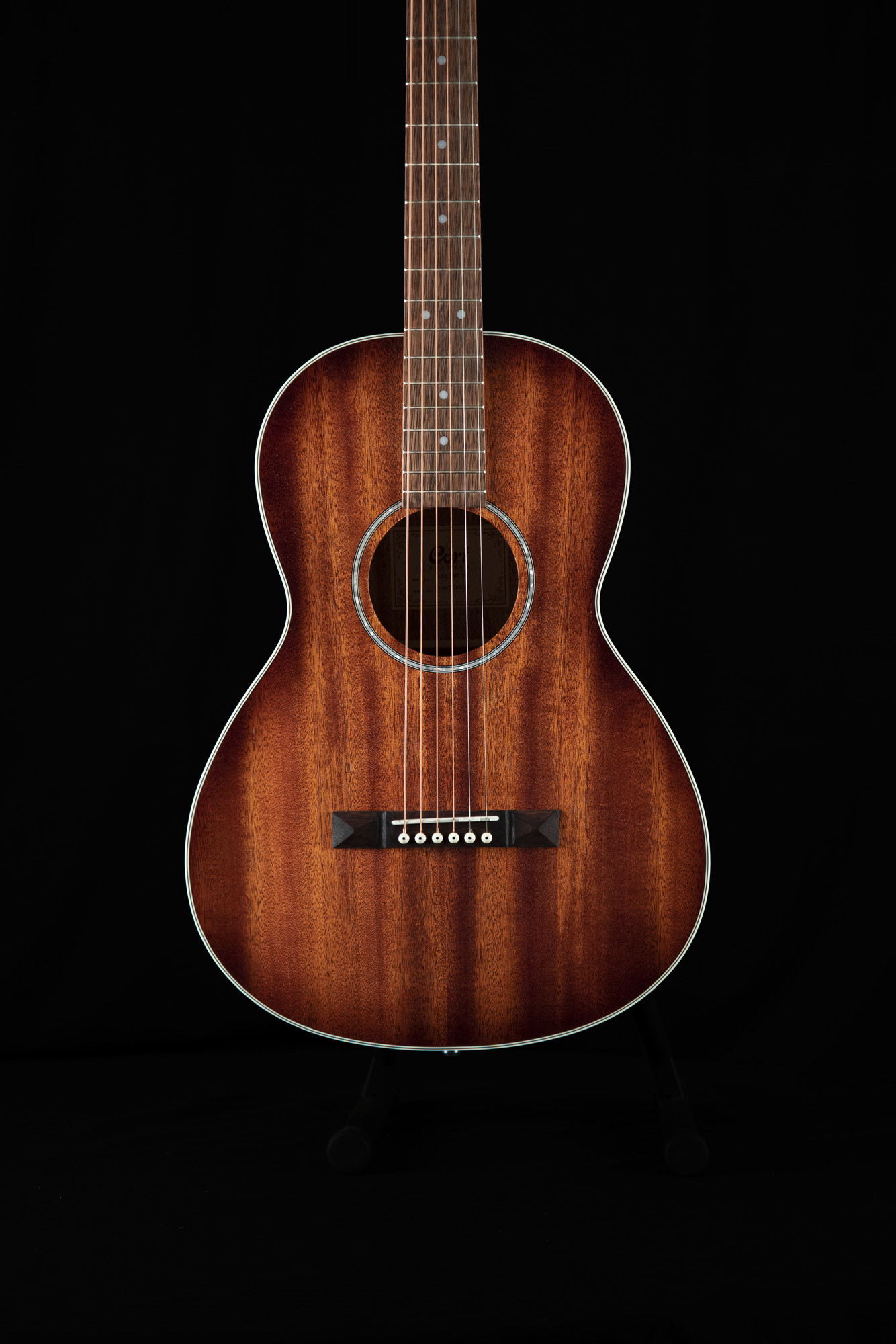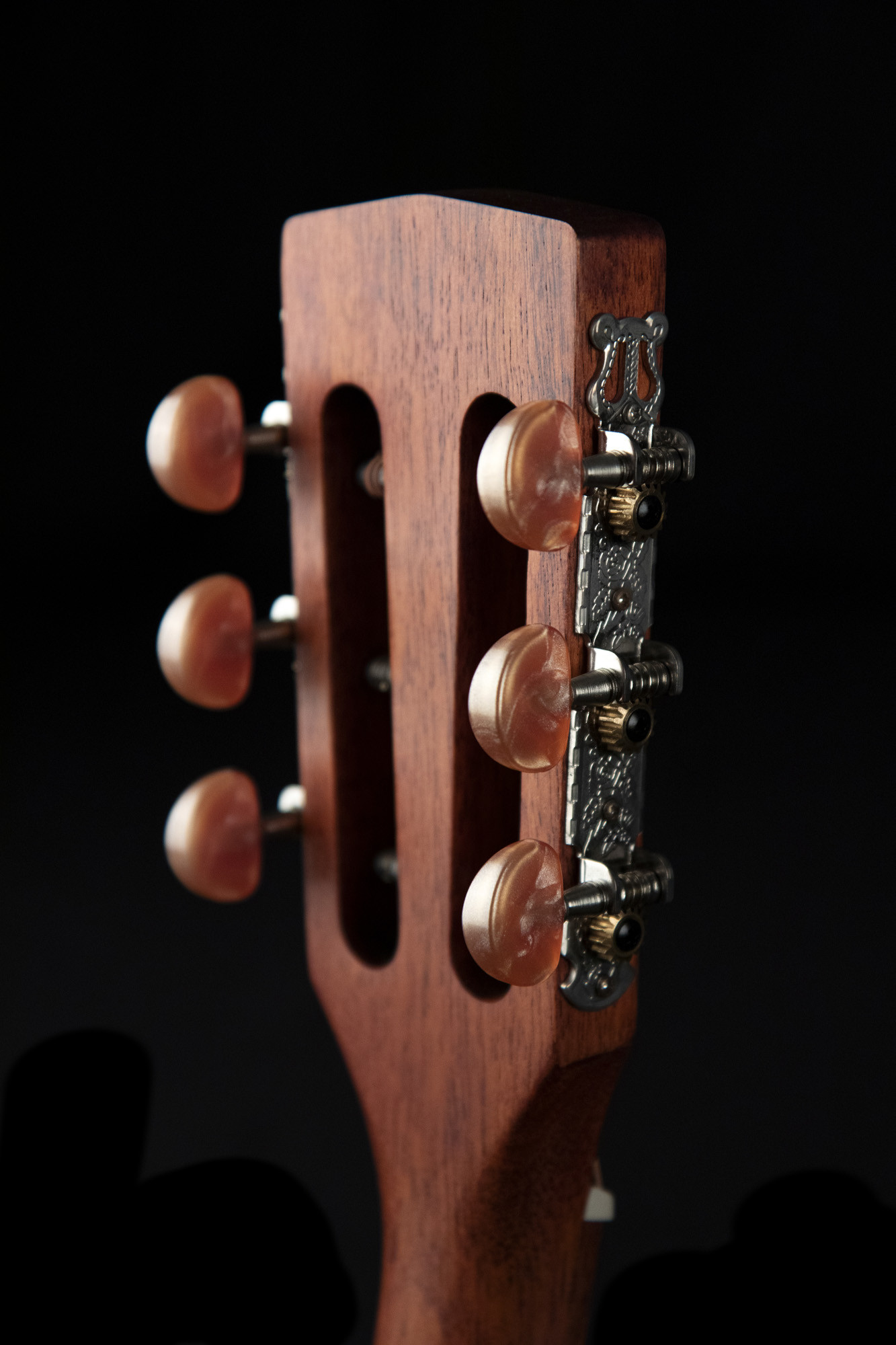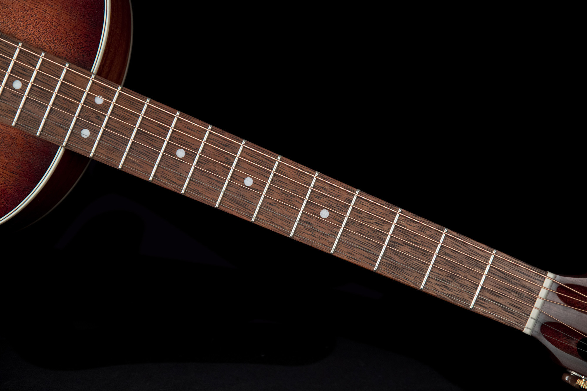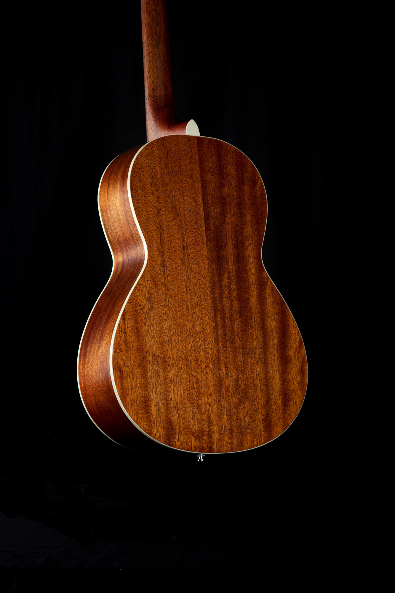 Its Parlor format, 43 mm nut, slotted headstock, and mahogany aesthetic give it a clear and harmonious identity. It is an interesting choice for those who prefer a compact format with an elegant presentation.