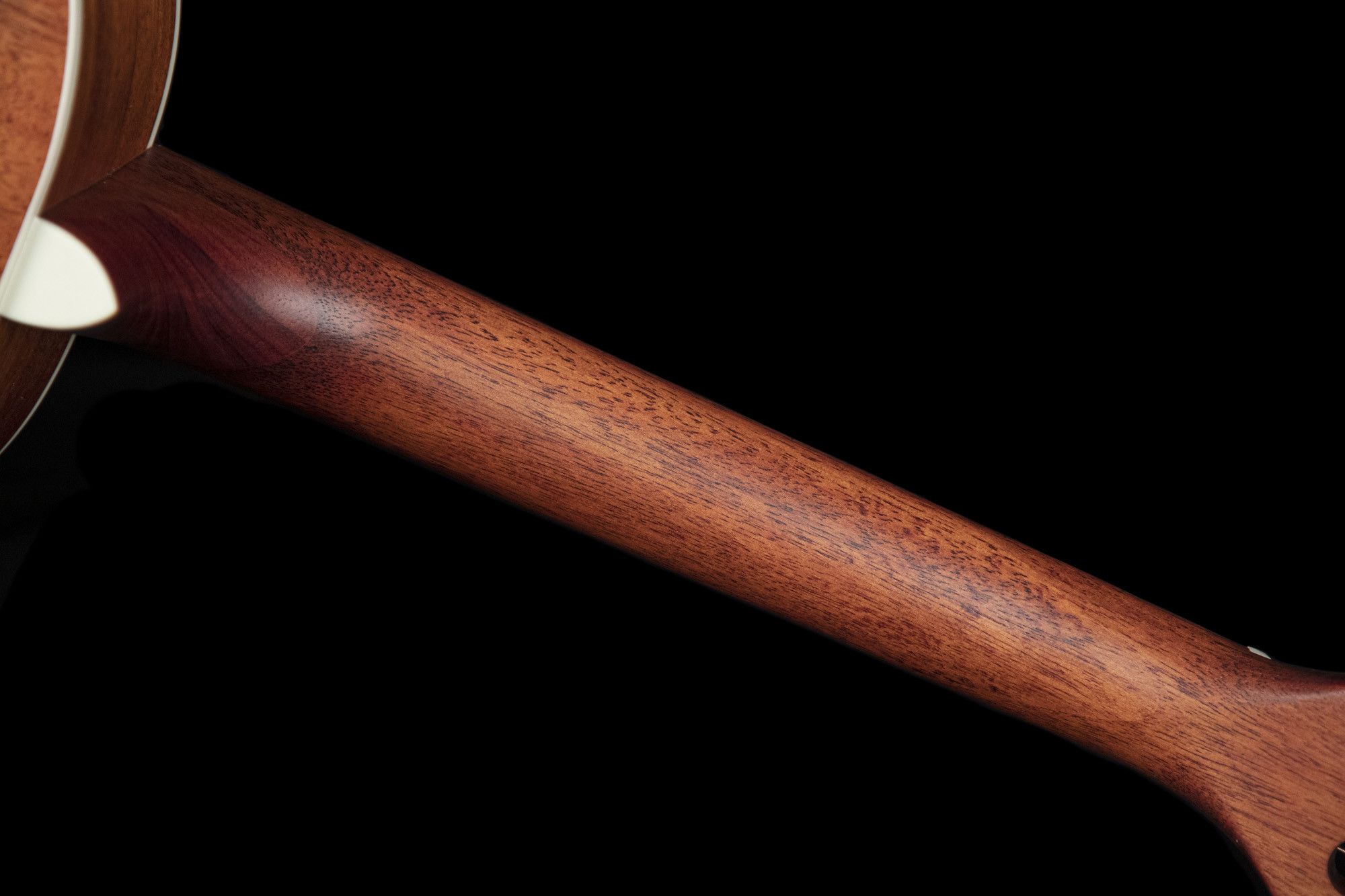 Its construction in mahogany for the top, back, sides, and neck, combined with a merbau fingerboard and bridge, offers a consistent design and carefully selected materials. The natural open-pore finish also enhances its visual character.
