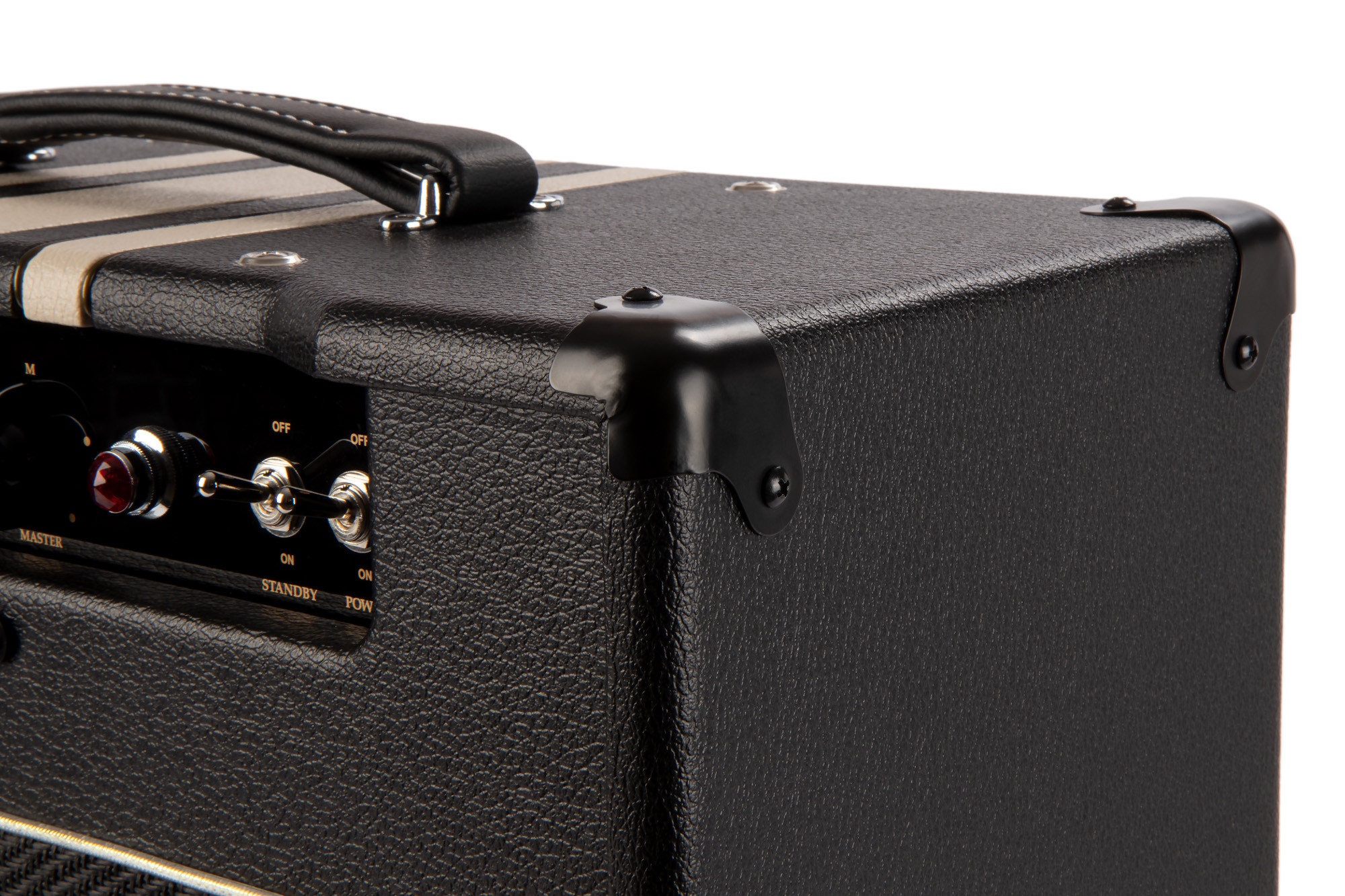 This 15W tube amp is equipped with a 1 x 12" Moollon G12-30M speaker and a preamp section made up of 3 12AX7 tubes, paired with 2 EL84 tubes for amplification. It features 3-band EQ, an effects loop, and 4/8/16 ohm speaker outputs. Its hand-wired circuit and black finish complete a package designed to provide a reliable and refined solution. It weighs 17 kg and measures 47 x 50 x 23 cm.