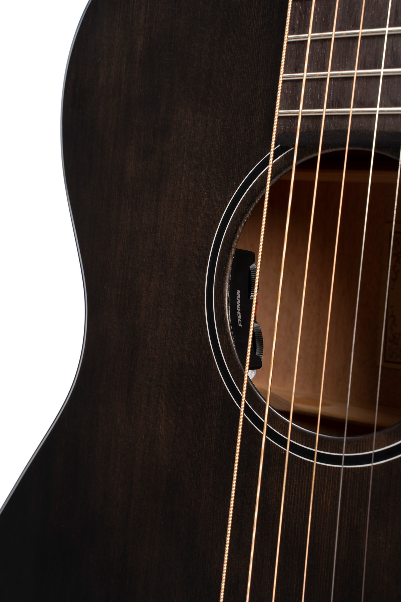Equipped with a Fishman Sonitone system with Sonicore pickup, it provides discreet and effective amplification. It comes with Elixir Nanoweb Phosphor Bronze strings in Light 12-53 gauge, for a comfortable feel and a tone suited to versatile use. Its open-pore black finish highlights the natural look of the wood while maintaining a clean and elegant style. A soft case is included for easy transport and storage.