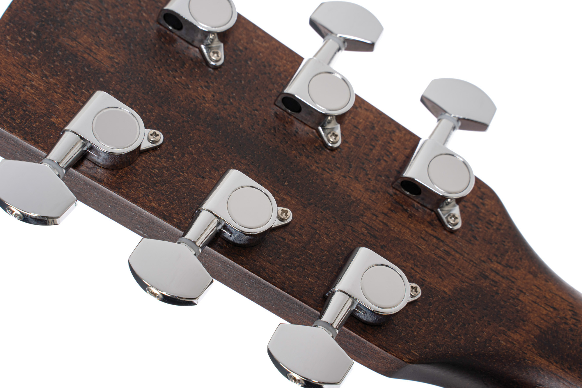 Its solid mahogany top, mahogany back and sides, as well as its mahogany neck and merbau fretboard, are elements that promote careful craftsmanship and a harmonious sound. The open-pore finish also highlights the instrument’s authentic character.