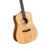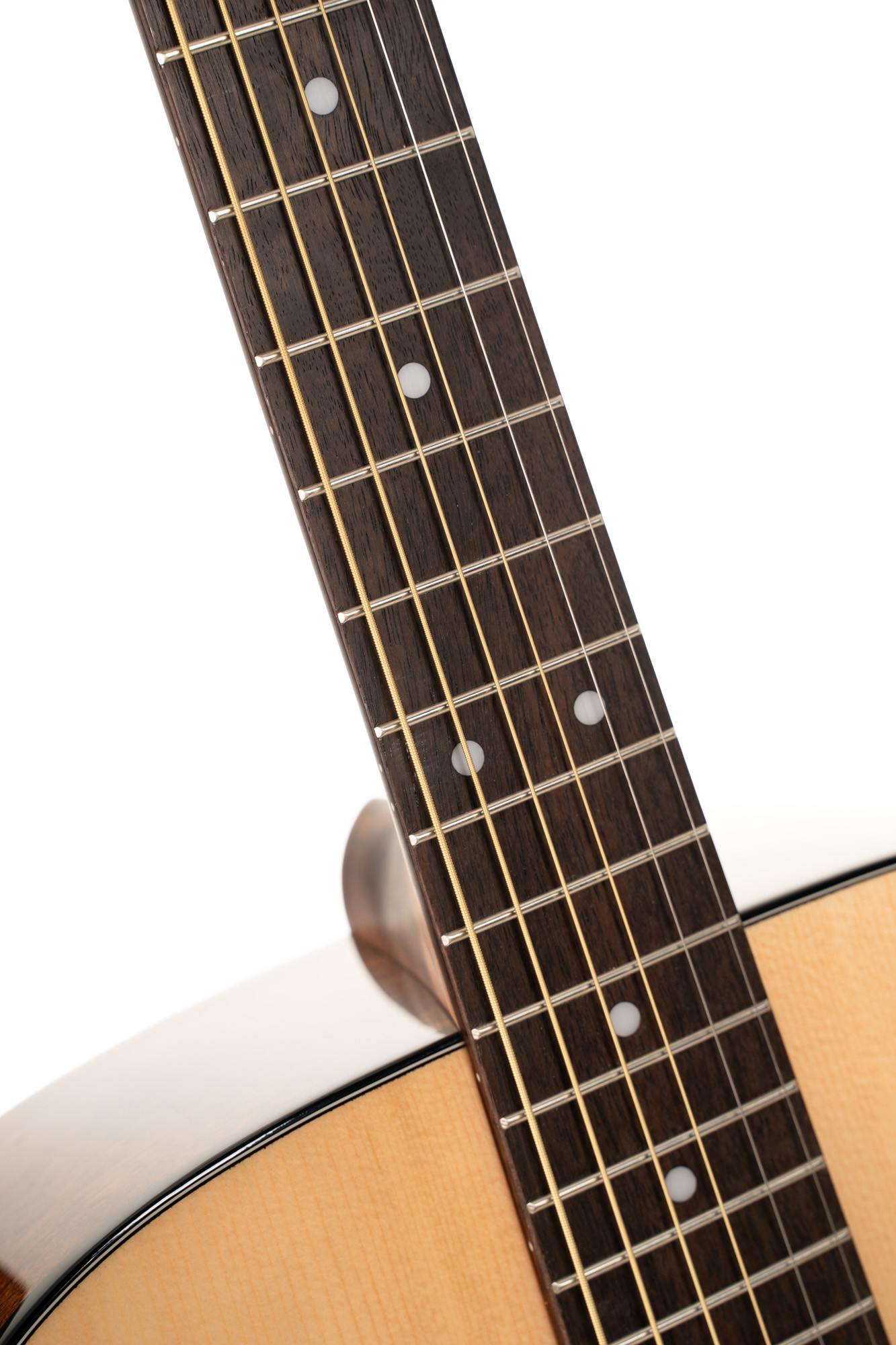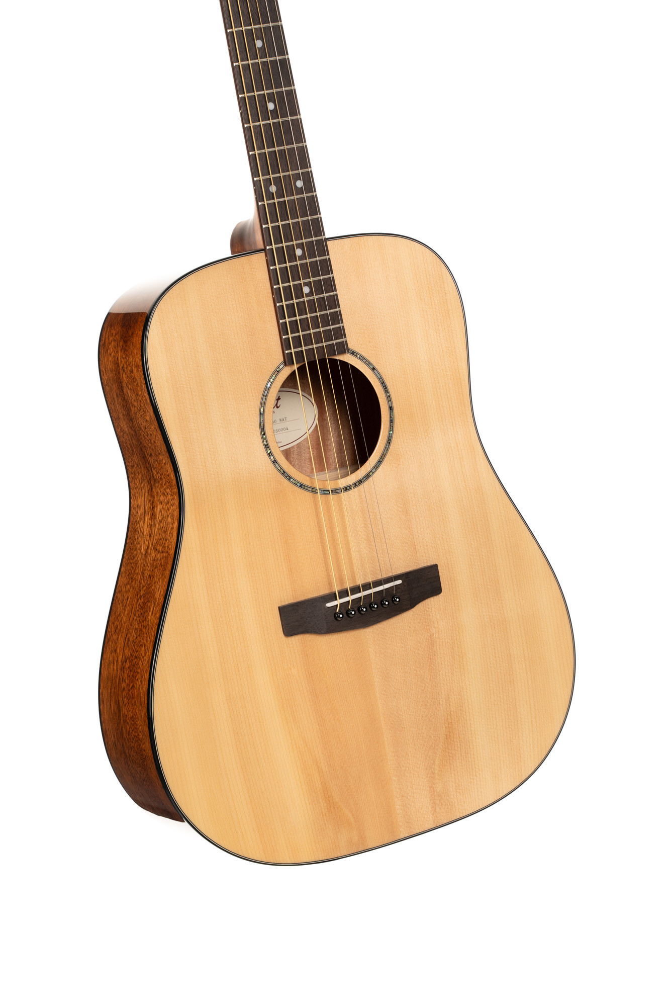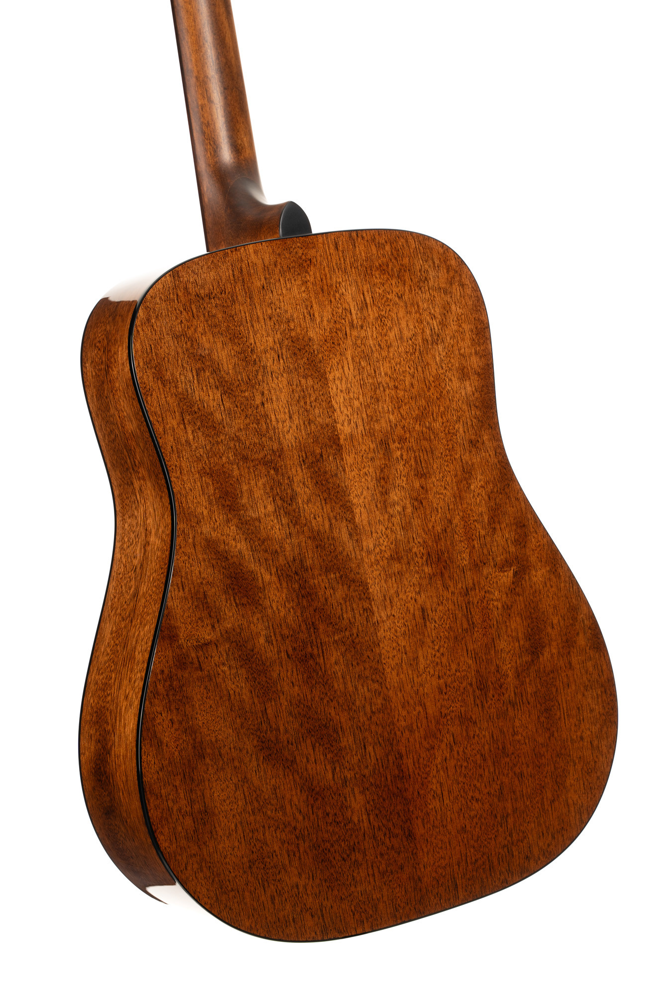 This model stands out with a solid spruce top, paired with mahogany back and sides. The mahogany neck, laurel fingerboard, and glossy natural finish complete an instrument designed to offer a classic, refined build.