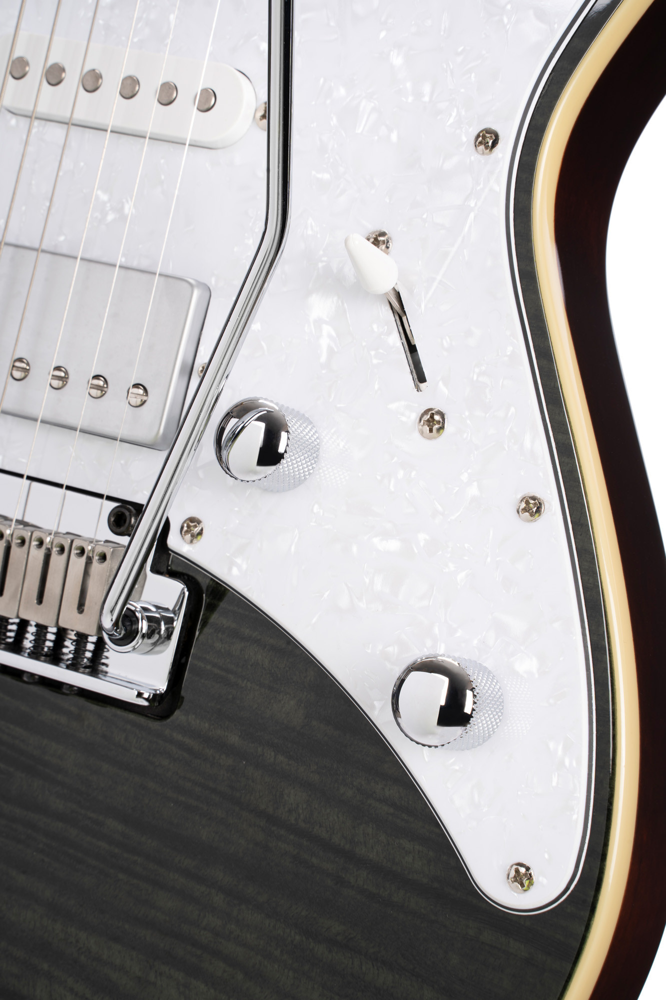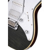 This model combines an alder body with a flamed maple top for a refined aesthetic, enhanced here by a translucent black finish. It features a maple neck, a rosewood fingerboard and a compound 12"-16" radius for a comfortable feel suited to modern playing.