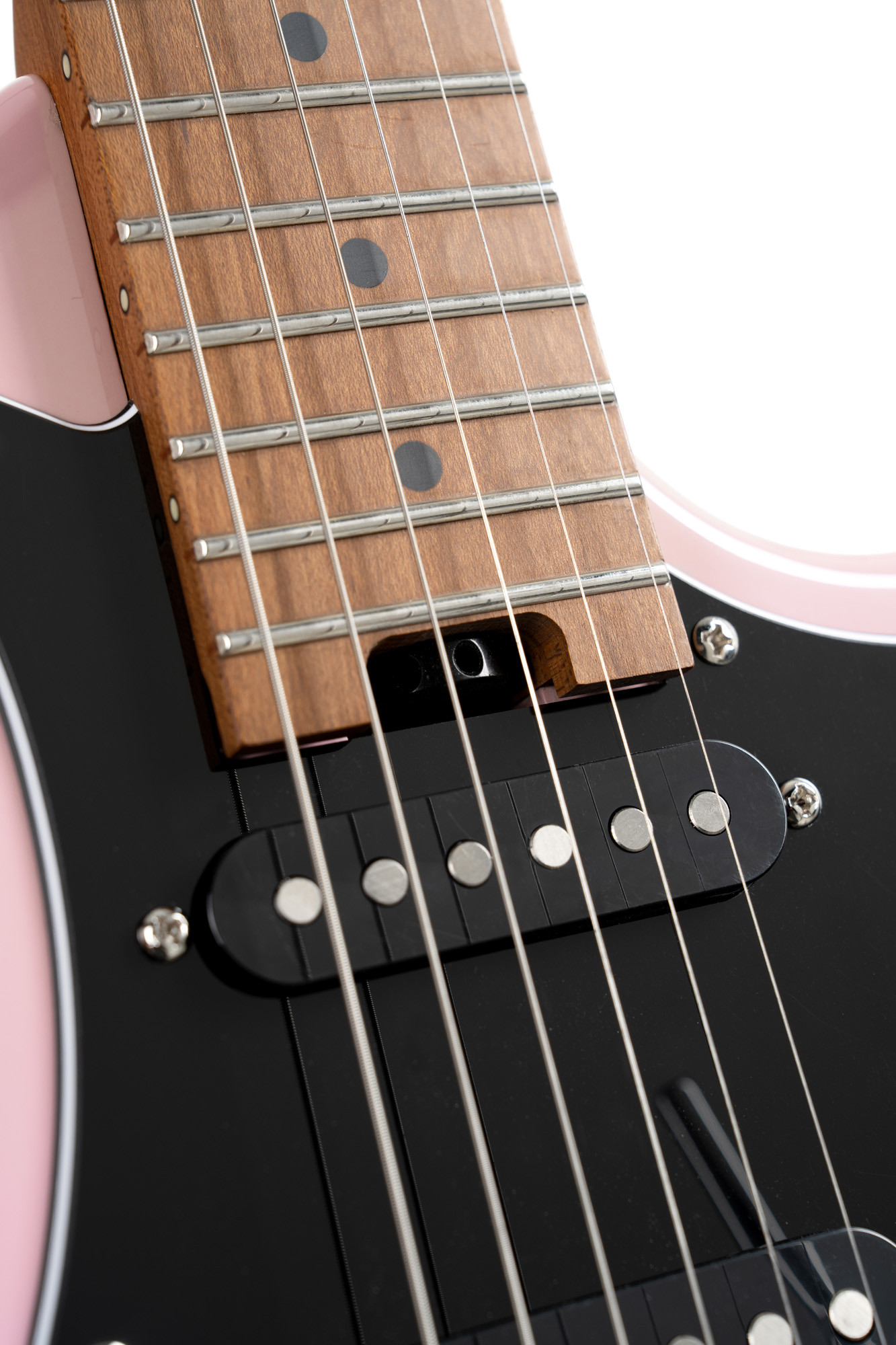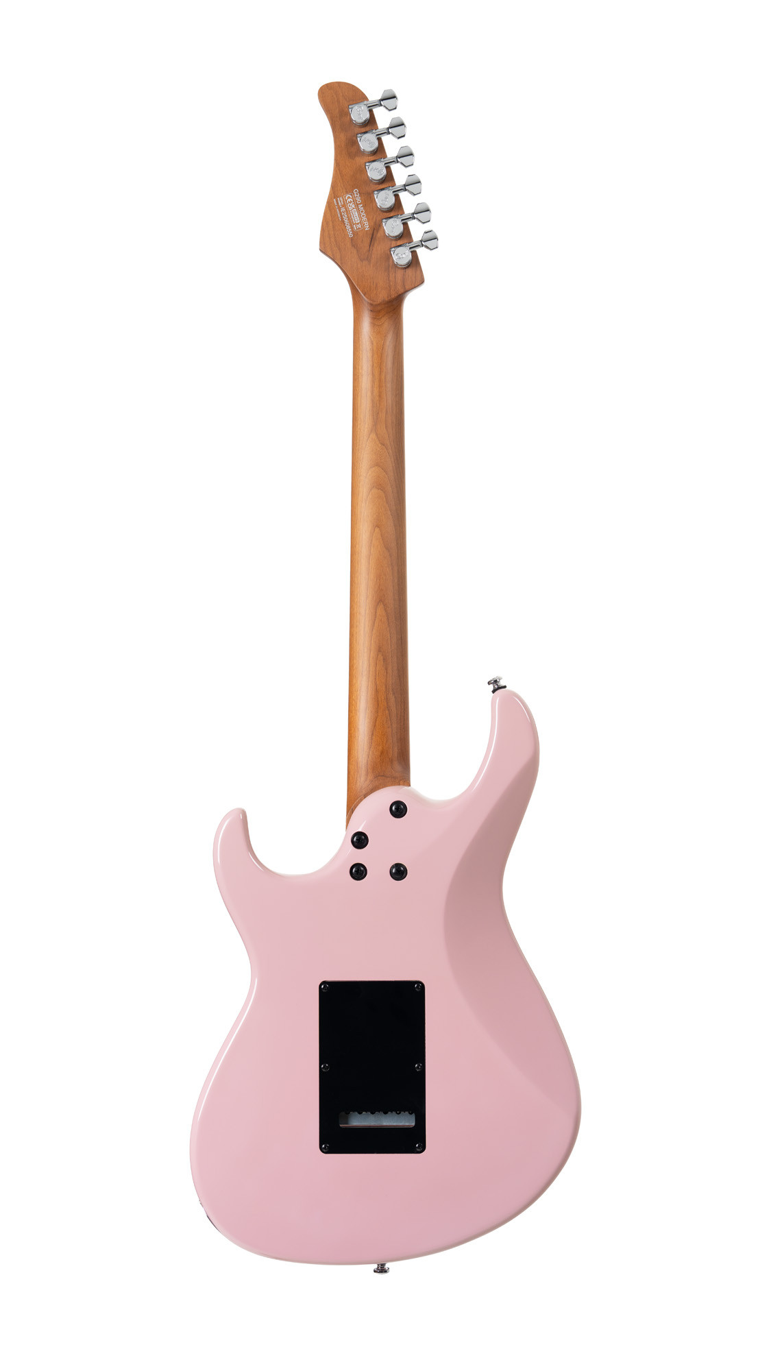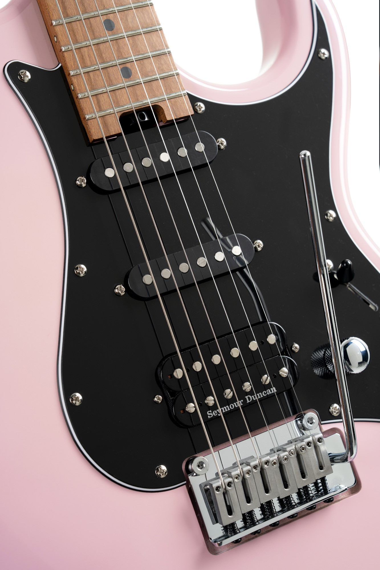 Poplar body, roasted maple neck and fingerboard, HSS configuration with 2 Voiced Tone VTS-63 pickups and 1 Seymour Duncan TB4 pickup, dusty rose finish.