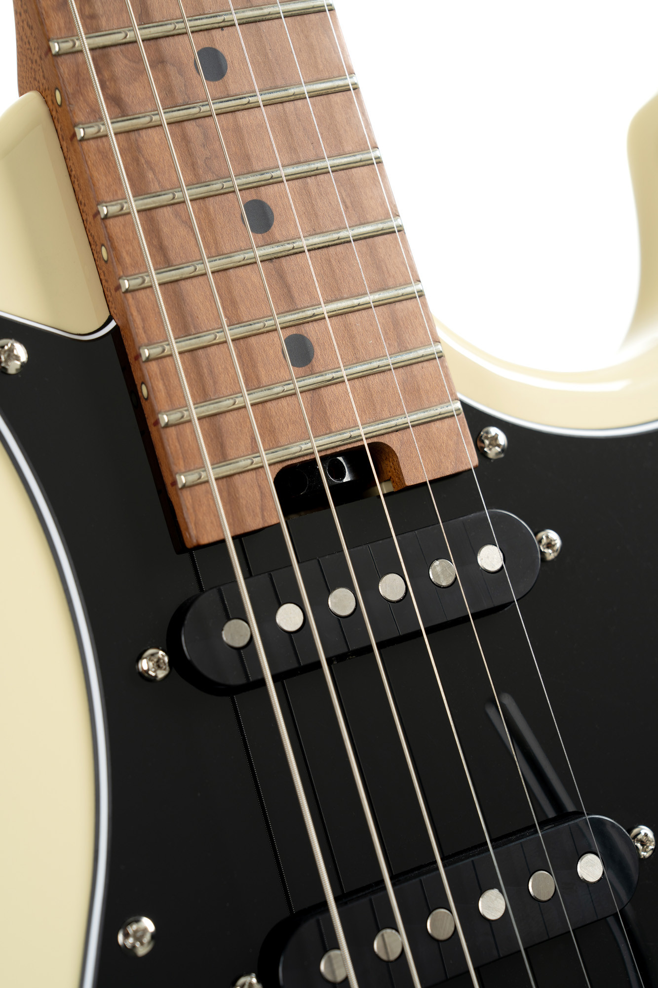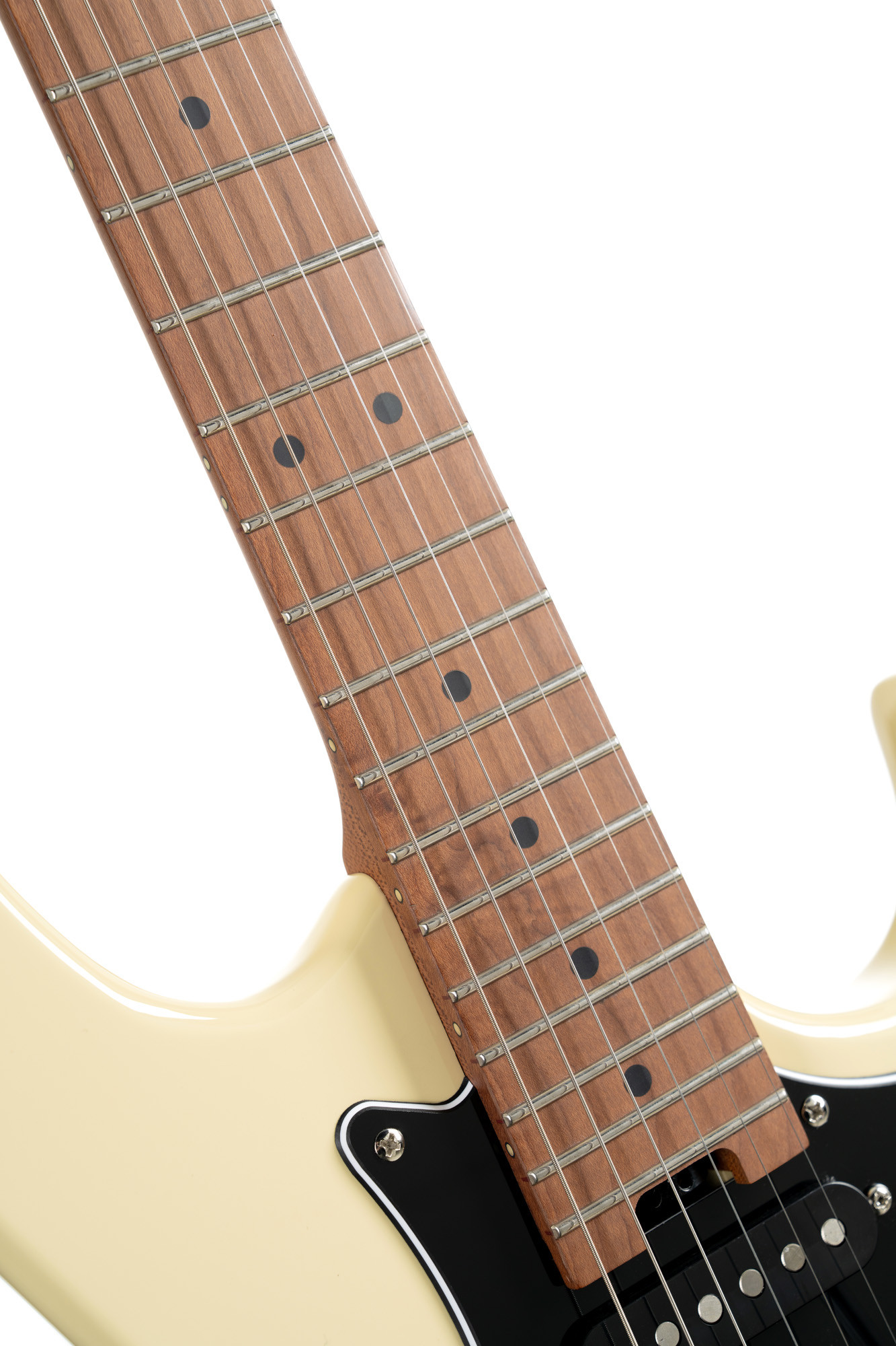 This electric guitar combines a poplar body with a roasted maple neck and fingerboard to deliver a comfortable, stable playing feel. It features 22 frets, a 42 mm nut, two Voiced Tone VTS-63 pickups and one Seymour Duncan TB4 pickup, plus a 5-way switch for easy tonal variation. The 2-point vibrato, staggered locking tuners, chrome hardware and luminescent side dots complete a package designed for reliability and precision. Supplied with D’Addario EXL-120 (9-42) strings, it comes in a military beige finish.