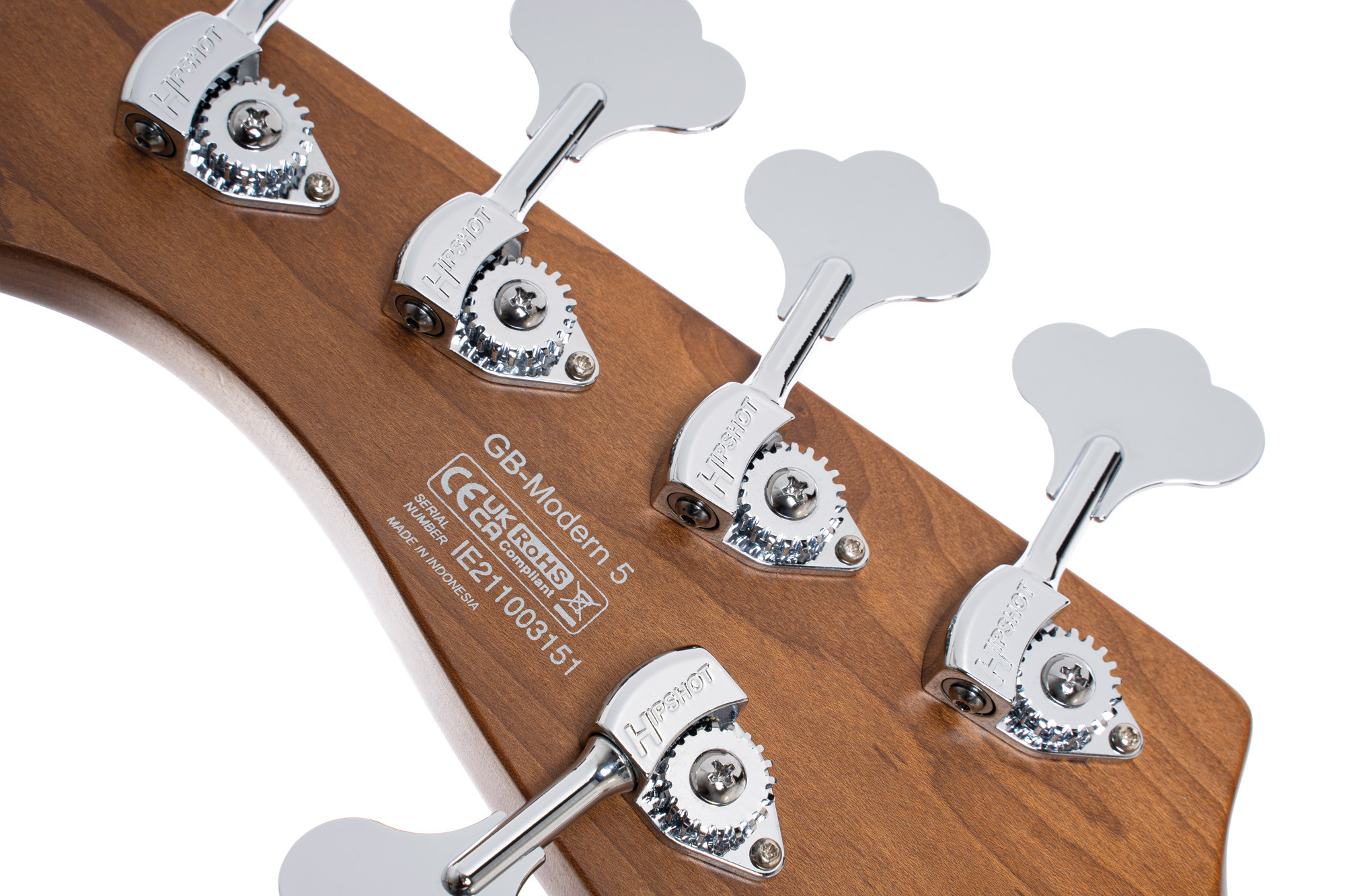 GB-MODERN 5, 5-string, figured poplar top, maple/paulownia/ash body, Nordstrand pickups, MarkBass preamp, charcoal grey finish.