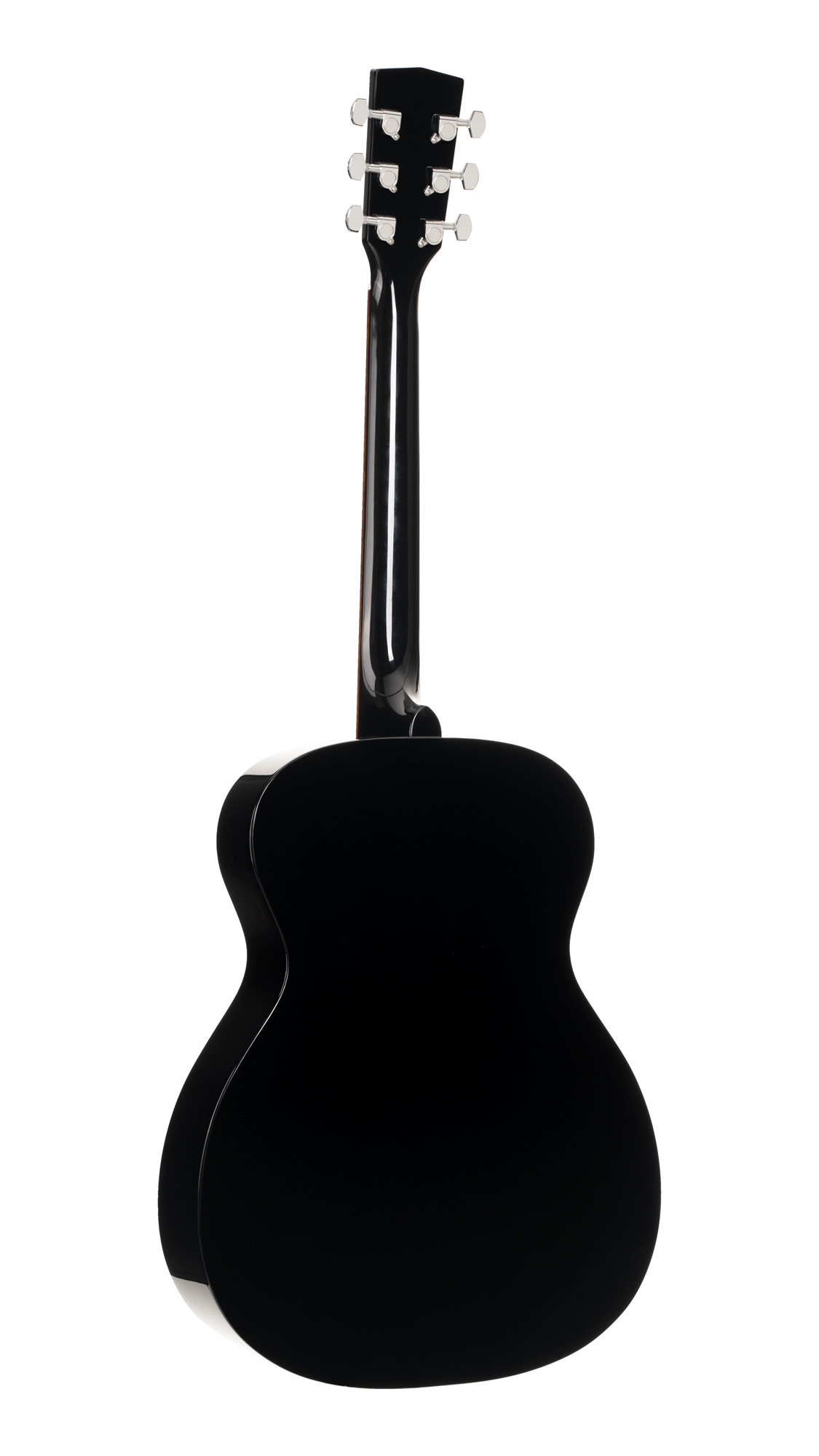 It stands out for its combination of a solid spruce top, mahogany body, laurel fingerboard, and gloss black finish, while also offering chrome sealed tuners, 20 frets, and a 45 mm nut.