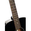 This Orchestra Model combines a solid spruce top with mahogany back and sides for a refined, balanced build. The mahogany neck and laurel fingerboard provide a comfortable feel, while the gloss black finish adds an elegant look. It is equipped with 20 frets, a 45 mm nut, and chrome sealed tuners.
