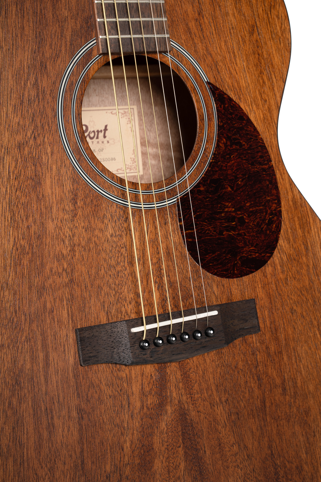 This Orchestra Model guitar combines a solid mahogany top with mahogany back and sides to offer a careful, cohesive build. Its mahogany neck, laurel or merbau fingerboard, 20 frets, and 45 mm nut make it an instrument designed for a comfortable playing experience. The natural open-pore finish highlights the wood's aesthetic with an authentic look.
