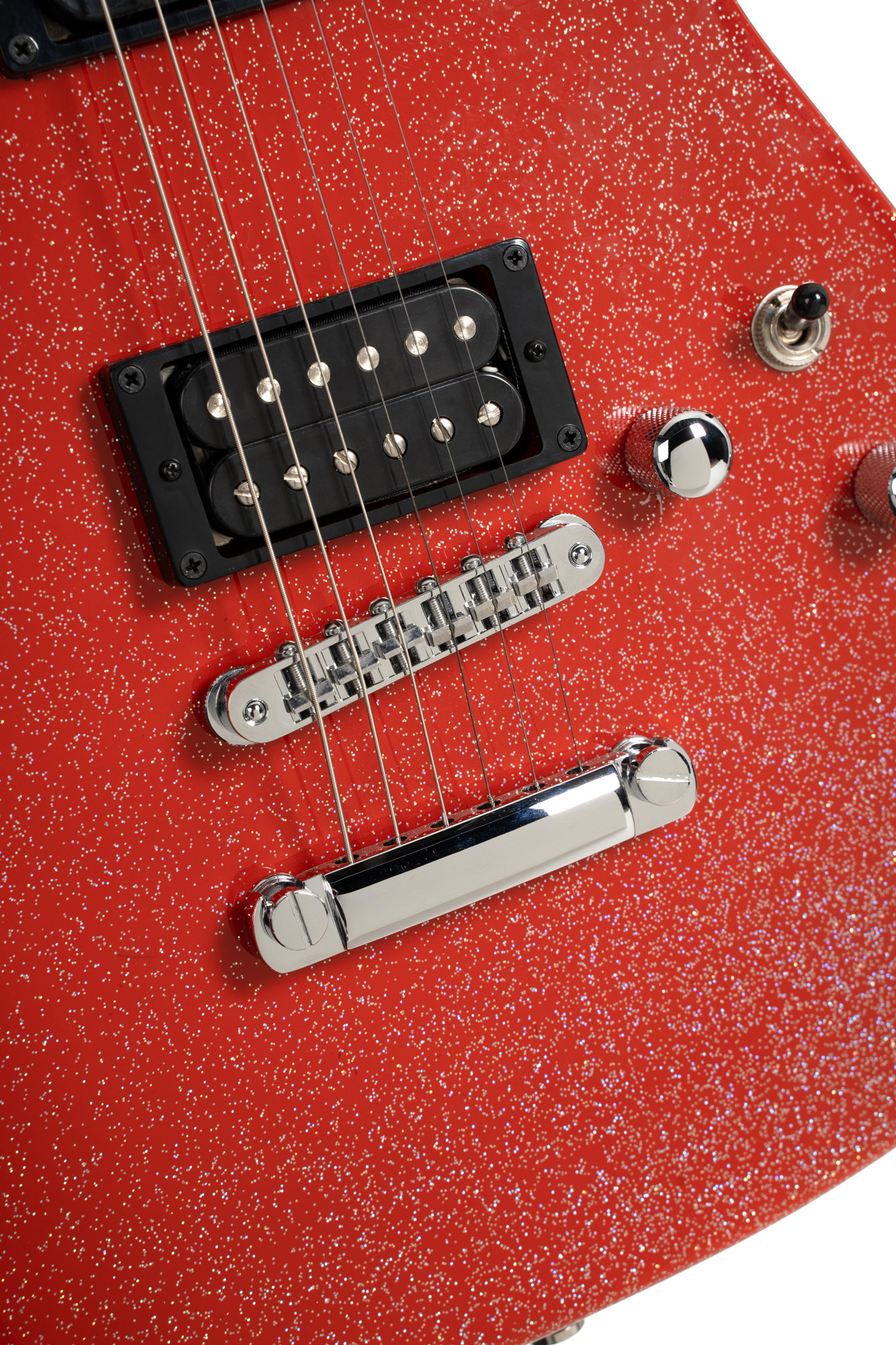 It stands out for its Matt Bellamy signature, its Kill button, its dual Manson pickup configuration, and its sparkly red finish, while maintaining a construction designed for stability and versatility.