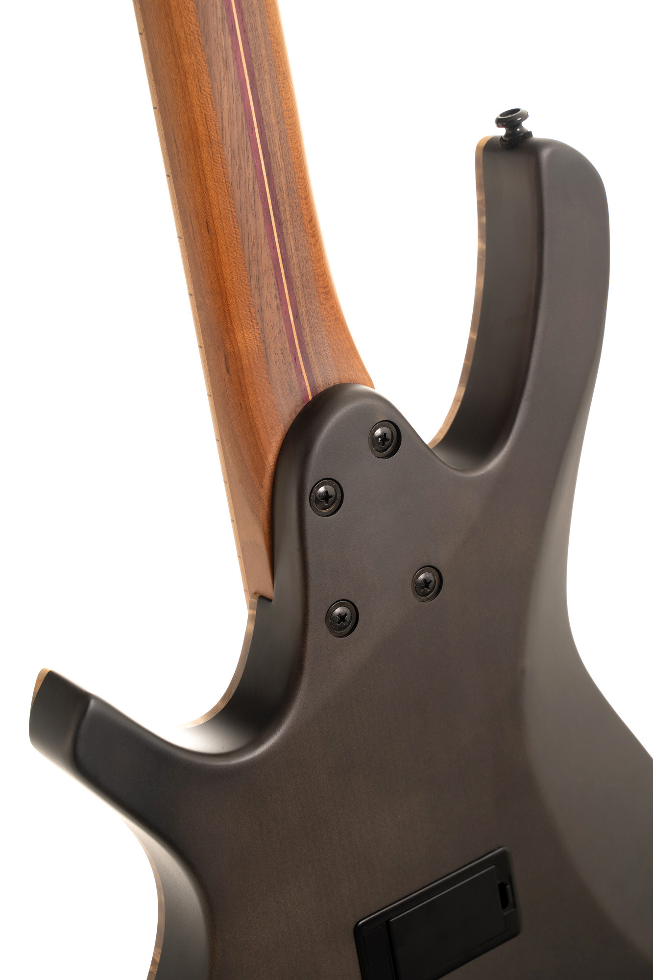 • 7-piece neck in roasted maple, walnut, purpleheart, and maple