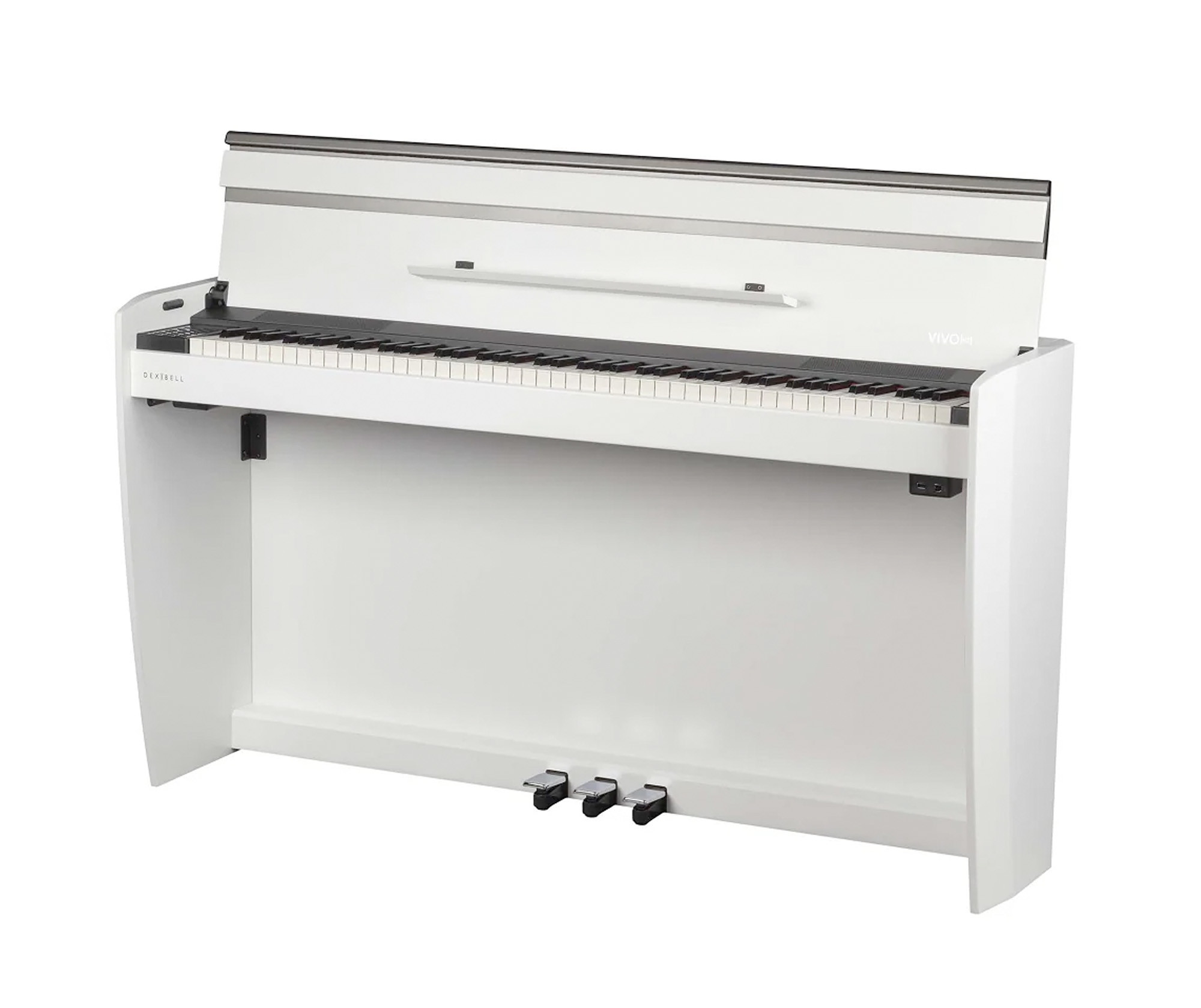The Dexibell Vivo H10WH is a digital cabinet piano designed to deliver a precise and natural playing feel. Its 88-key hybrid keyboard combines weighted and progressive touch, triple contact, ivory and ebony feel, as well as a repetition mechanism with escapement simulation. It is aimed at pianists looking for a complete instrument, suited to both practice and expressive performance.