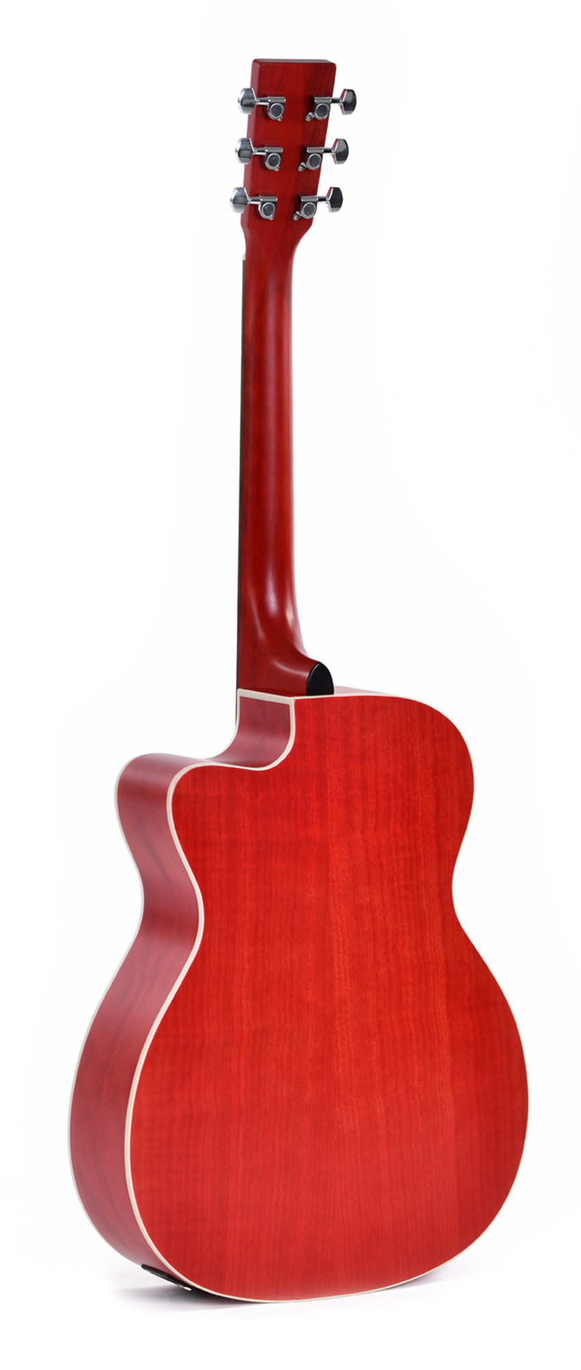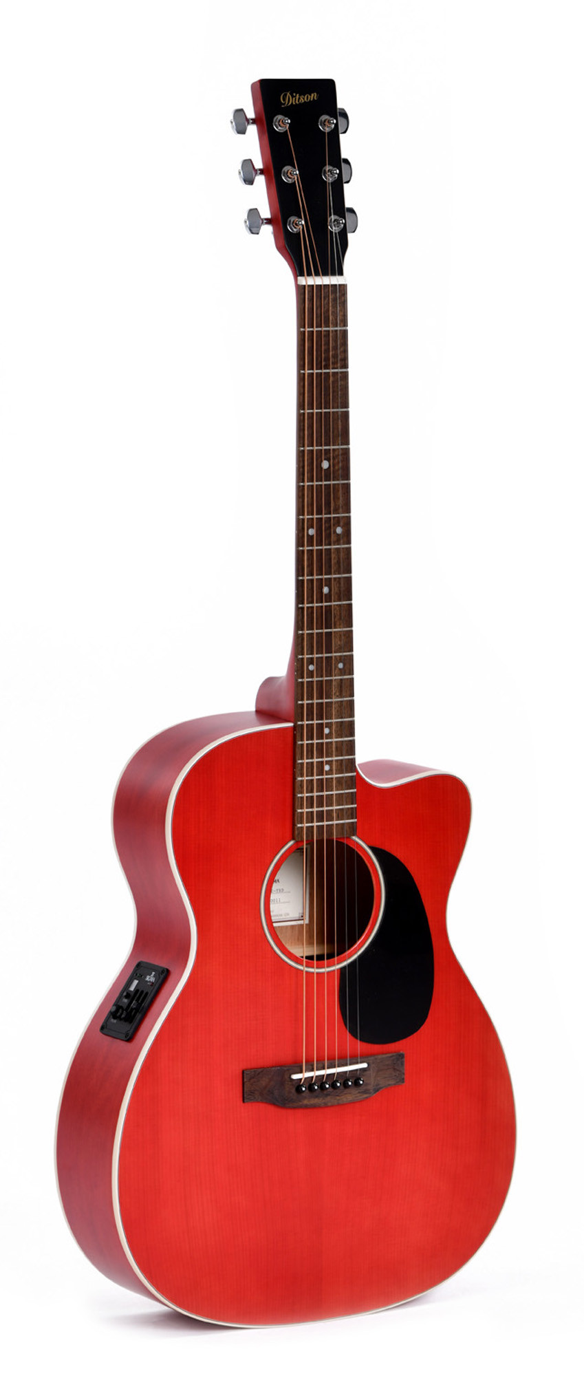 Because it combines a 000 cutaway body shape, a Sigma SE-PT EQ, a satin red finish, and a selection of precise components such as the 43 mm nut width and laurel fingerboard, offering a well-balanced package in its category.