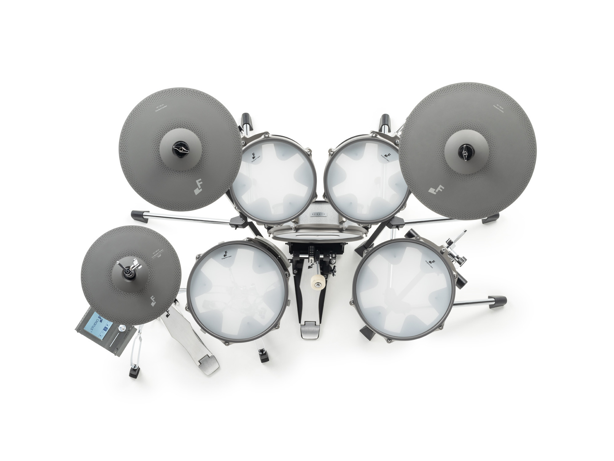 It stands out for its balance between rich features, the number of available kits, user slots, and a complete pad configuration. The integration of Bluetooth, USB audio, and choke functions on the cymbals also adds extra possibilities.
