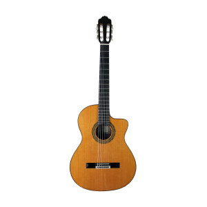 It stands out for its solid cedar top, mahogany back and sides, mahogany neck, rosewood fingerboard, and Savarez Corum strings. The 52 mm nut width is also part of its technical specifications.