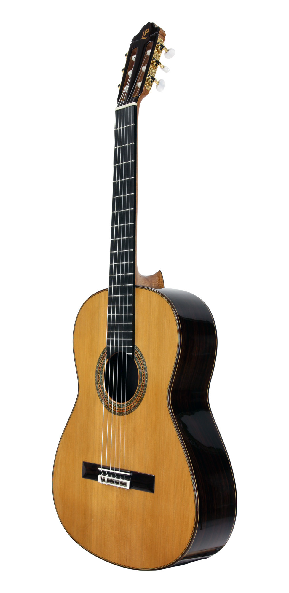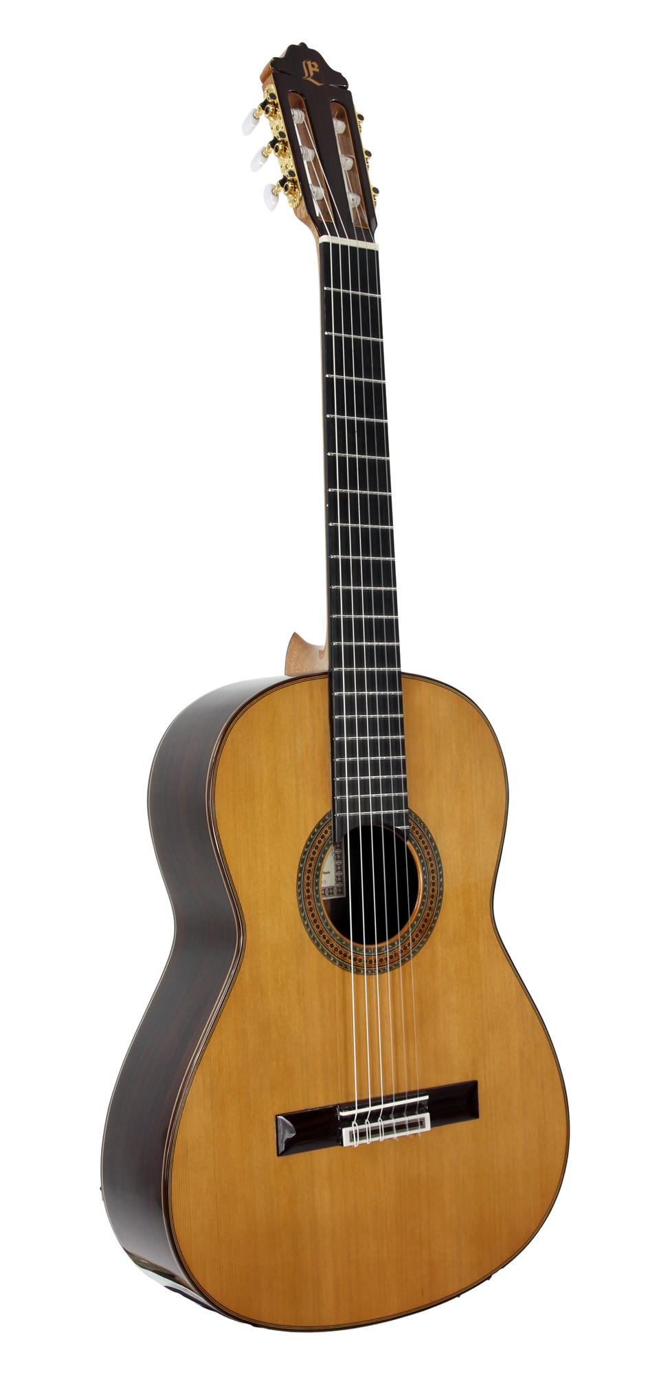 Solid cedar top, solid Indian rosewood back and sides, lattice bracing, ebony fingerboard, with soft case.