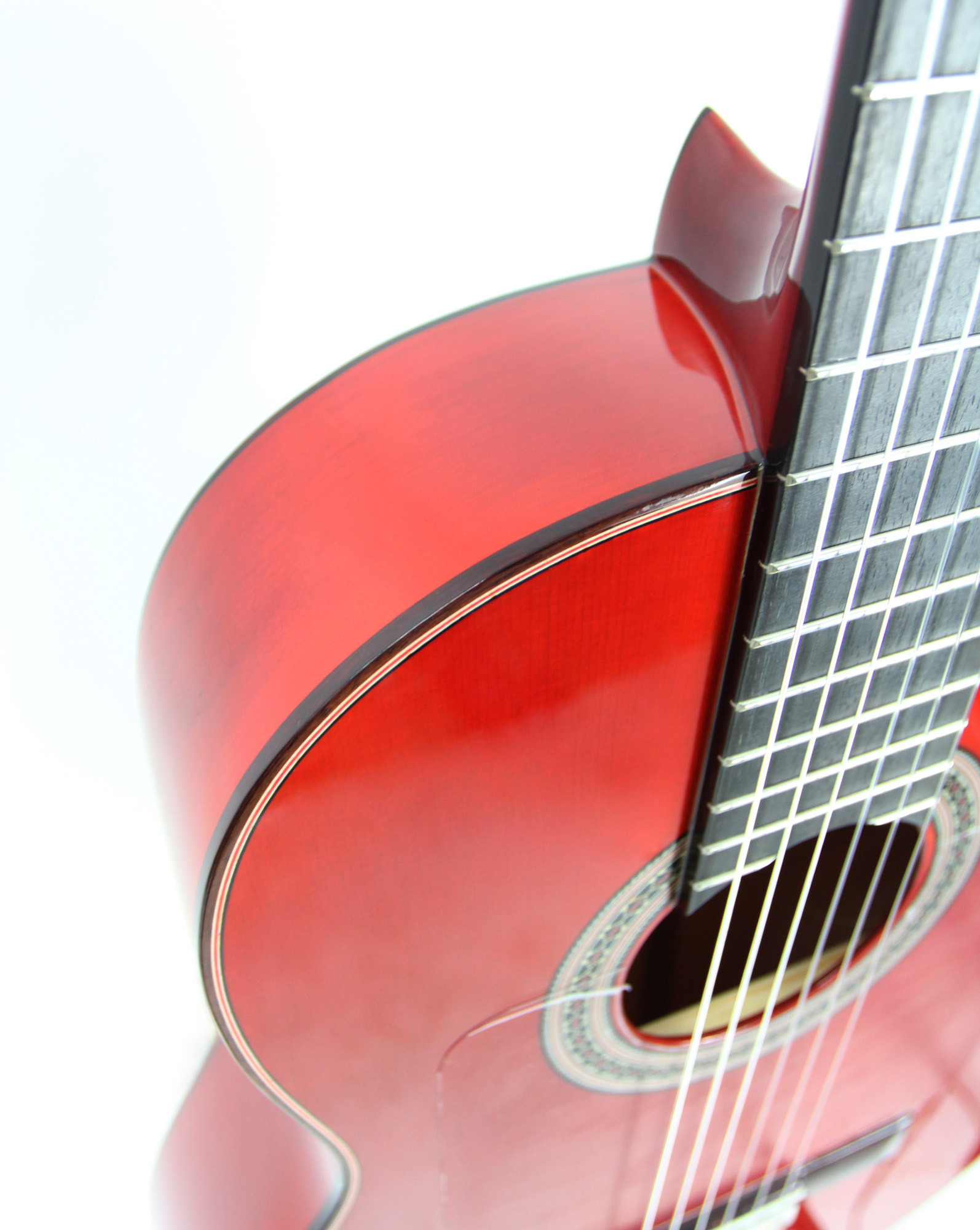 This GIPSYKINGS (by André Reyes) model is designed for flamenco style and combines a solid spruce top with a solid cypress back and sides. Its gloss red finish gives it a distinctive visual presence. It comes with a soft case.
