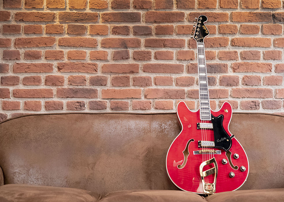 Hagstrom Viking 67 Wct is a faithful reissue of the original 1967 model, also known as the “Elvis” model. This version stands out for its Wild Cherry Transparent finish and careful construction, designed to deliver an iconic look and features inspired by the original.