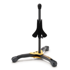 Compact stand for trumpet or cornet, velour cone, swivel legs, with carrying case. Weight: 0.6 kg. Folded size: 33 x 9 cm.