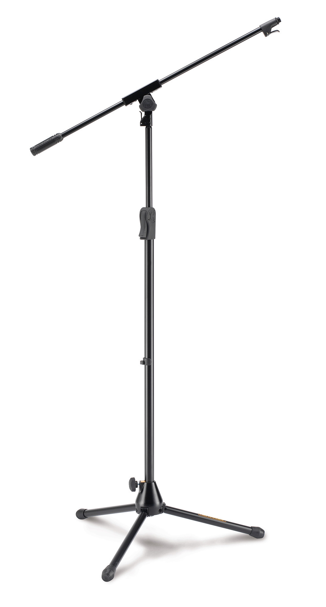 Microphone stand with adapter, socket and EZ boom clamp, cast aluminum tripod base.