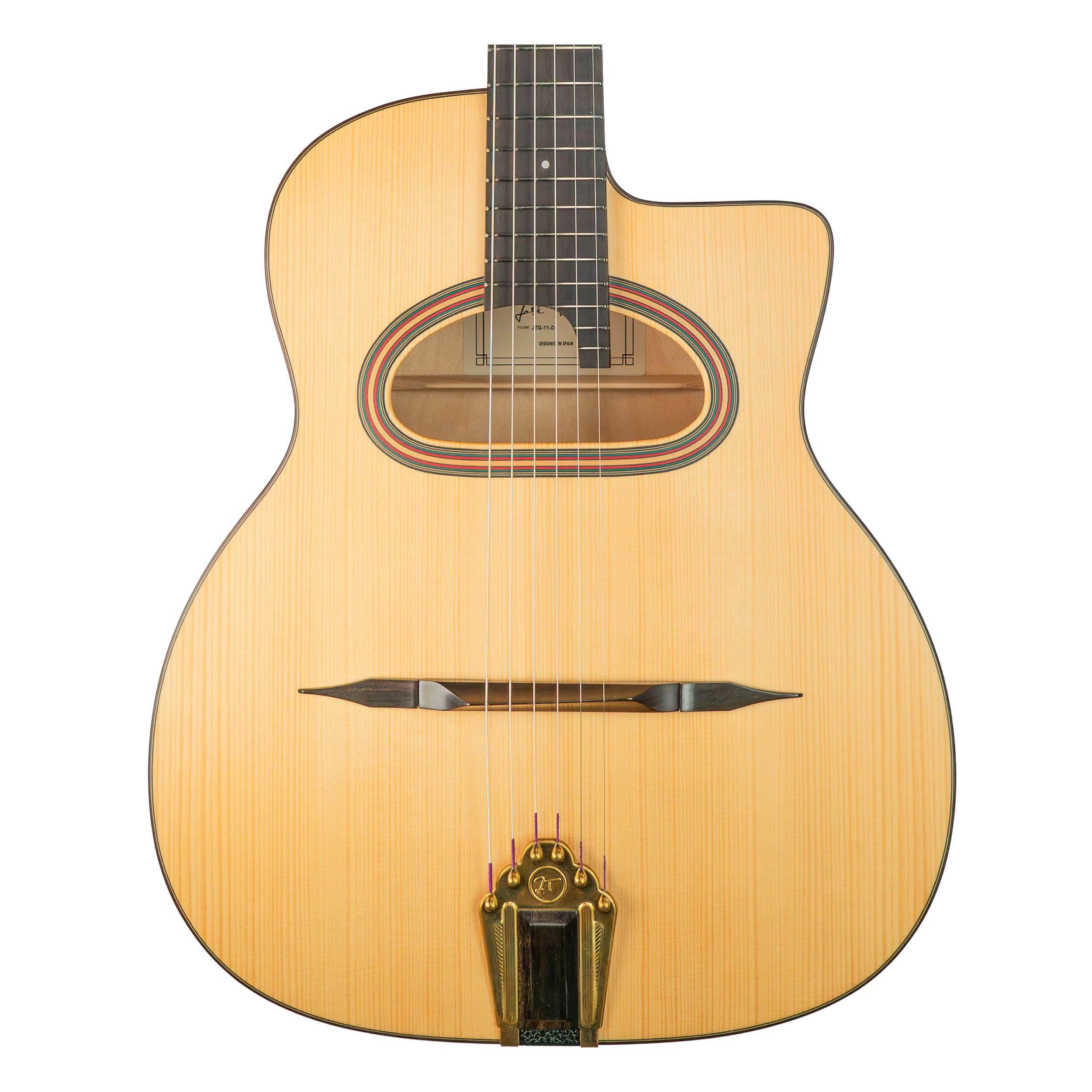 This José Torres JTG-11-D gypsy guitar is designed with carefully selected materials to offer a reliable instrument that is pleasant to play. Its solid spruce top contributes to excellent sound projection, while the maple back and sides add clarity and character to the tone.