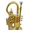 Designed to offer a comfortable grip and a consistent response, this model features a Bb key, an 11.70 mm bore, and a 120 mm bell. Its mouthpipe and bell in lacquered brass provide a refined finish, while the bell reinforced with a brass wire contributes to its strength. The stainless steel pistons with internal springs ensure reliable mechanics, and the two adjustable trigger levers make the instrument easier to adapt. The set is completed with a Jupiter Light backpack case and a mouthpiece.