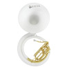 The Jupiter JSP1000B Sousaphone is designed to provide good sound projection and comfortable handling. Tuned to B flat, it features a fiberglass body and a white lacquered ABS plastic bell, as well as a 3-piece adjustable mouthpipe in lacquered brass. Its 17.5 mm bore, 660 mm bell, and 3 front-action stainless steel pistons make it an instrument suited to regular use. It comes with a padded case and a mouthpiece.