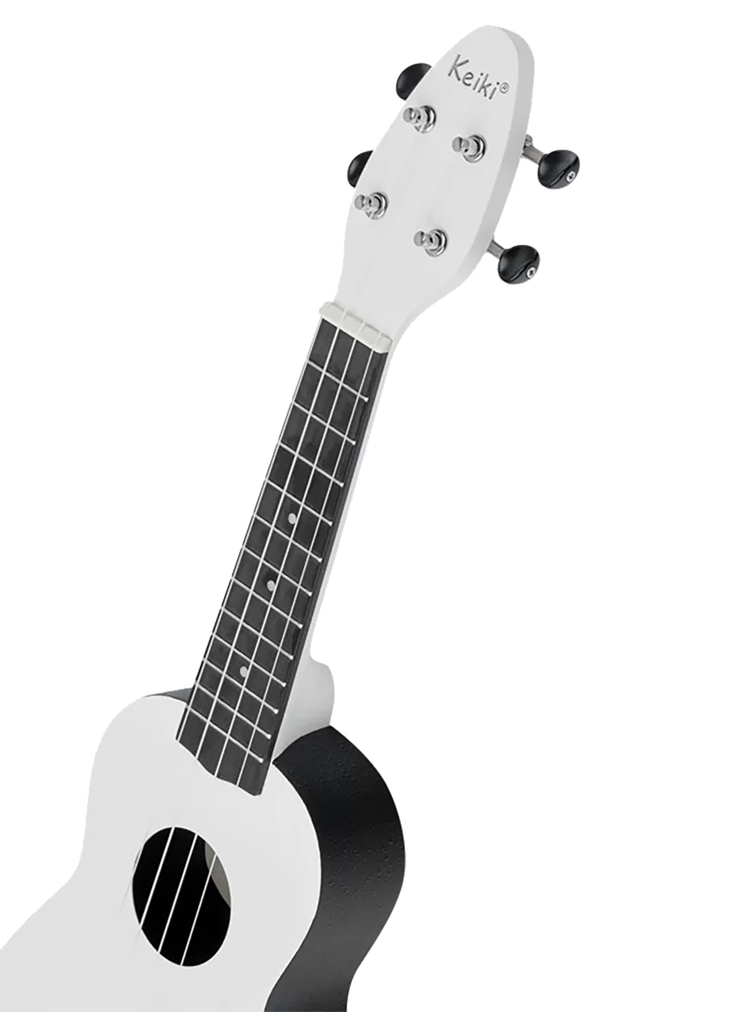 K2-SCL, soprano ukulele pack, agathis top, slightly arched ABS body, okoumé neck, 12 frets, 364 mm scale length, ABS fingerboard & bridge, open tuners with black knobs, with accessories (clip-on tuner, soundhole strap, 5 medium picks, drawstring bag).