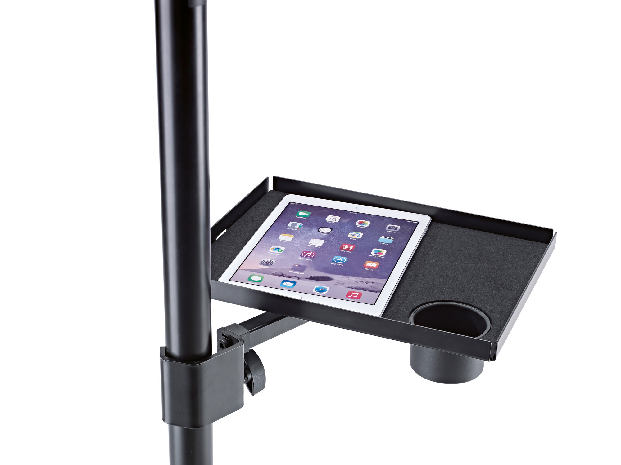 This tray for accessories or small instruments easily attaches to a tube with a diameter between 25 and 42 mm. It also includes a practical cup holder to keep essentials within easy reach. With its dimensions of 250 x 330 mm and a weight of 1.9 kg, it offers a stable and functional solution to complete your setup.