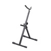 The K&M 14960 bass saxophone stand is a foldable model designed to provide excellent stability for heavy bass saxophones. Thanks to its many adjustment options, it easily adapts to a wide range of sizes and models. The distance between the two rubber-coated instrument supports can be adjusted from 70 to 880 mm, ensuring precise and suitable support. Its robust steel structure with a durable powder coating makes handling easy and is perfectly suited for use in rehearsal rooms, studios, or on stage.