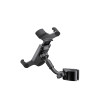 This universal smartphone holder clamps onto tubes up to 30 mm in diameter. It adapts easily and without tools to most phone models. Its plastic construction and free 360° rotation offer simple, flexible everyday use.