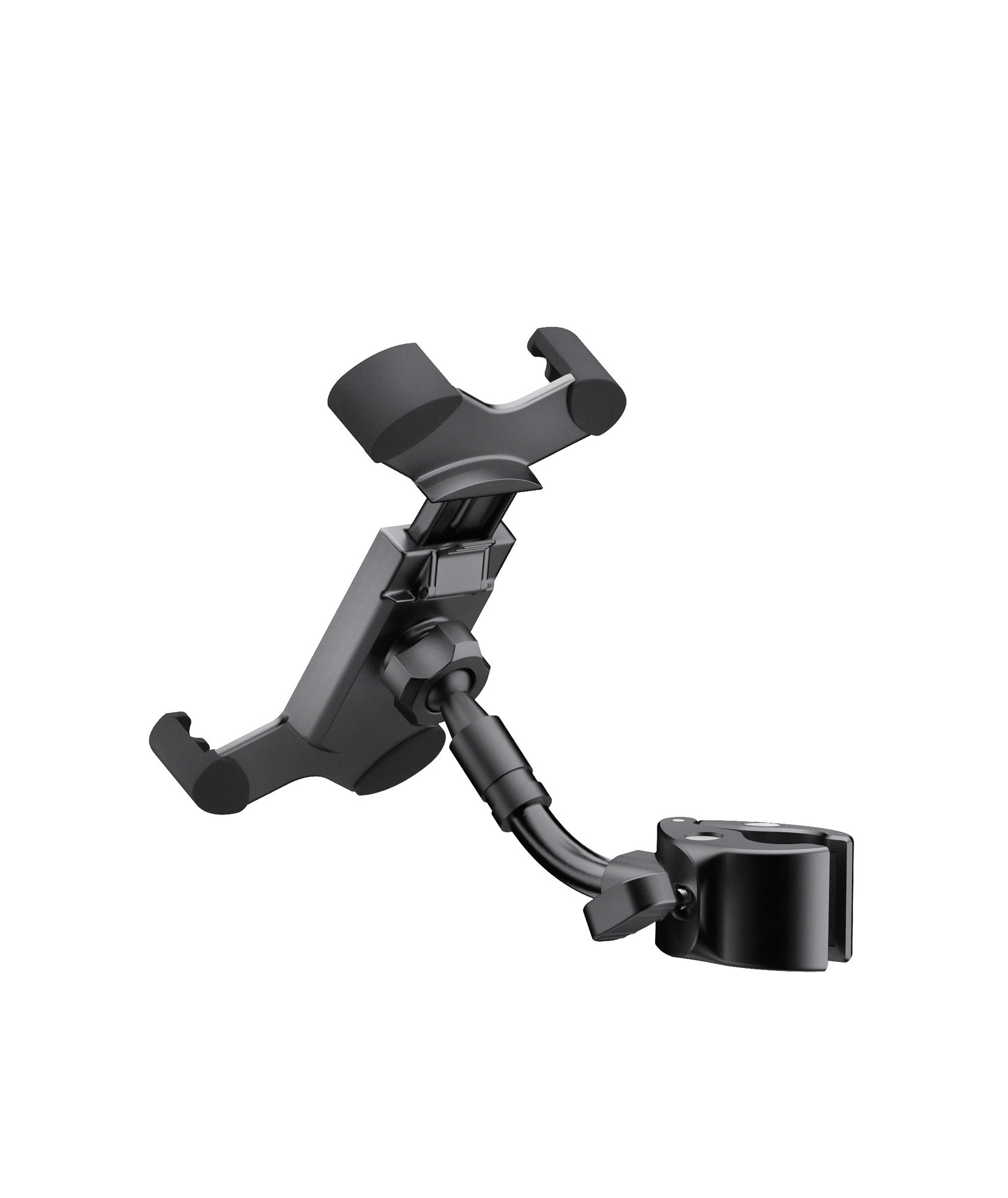 It offers practical clamp mounting, compatibility with tubes up to 30 mm in diameter, and 360° rotation to easily adjust the smartphone’s orientation.