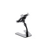 Design table stand in steel and plastic, with flexible support arm, black finish. It is particularly suitable for smartphones, flat devices, and MP3 players.
