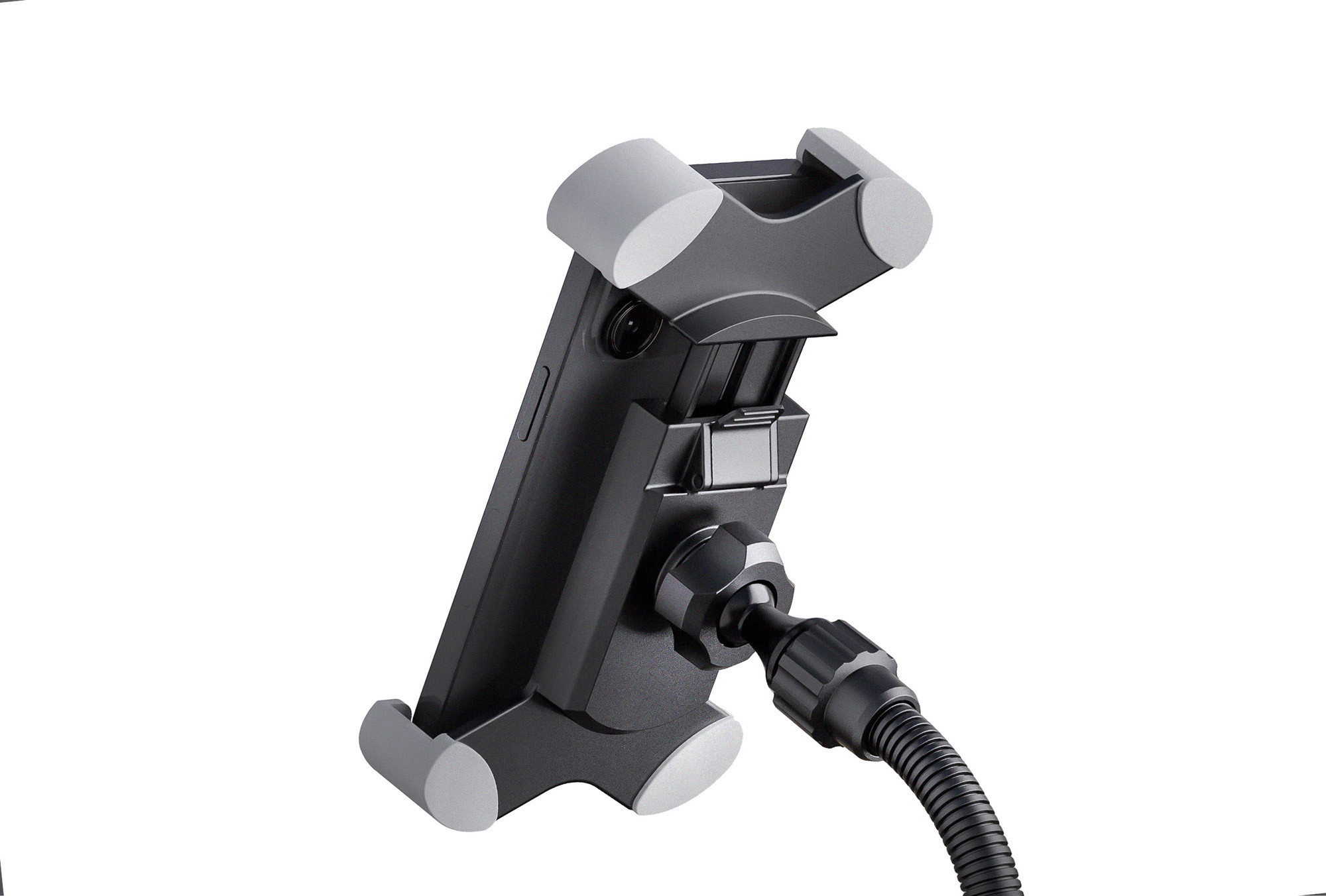 Universal stand designed to hold a smartphone with a width range of 55 to 85 mm. Its height is adjustable from 60 cm to 140 cm, making it easy to adapt the position to suit your needs. The quick-release button makes it easy to remove the smartphone, while the flexible ball joint ensures 360° rotation. Its 100 mm flexible mounting arm contributes to practical, adjustable positioning.
