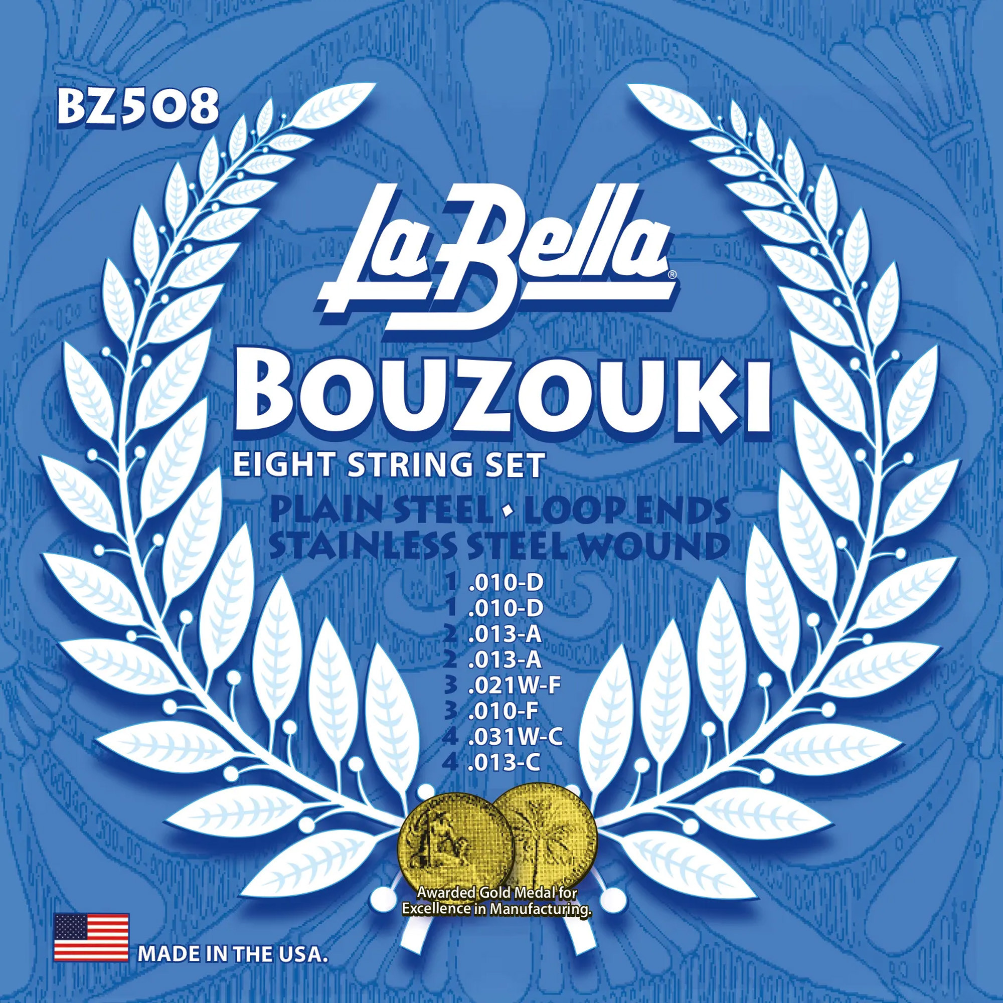It offers plain steel and stainless steel wound construction, with a standard composition designed for this type of bouzouki.