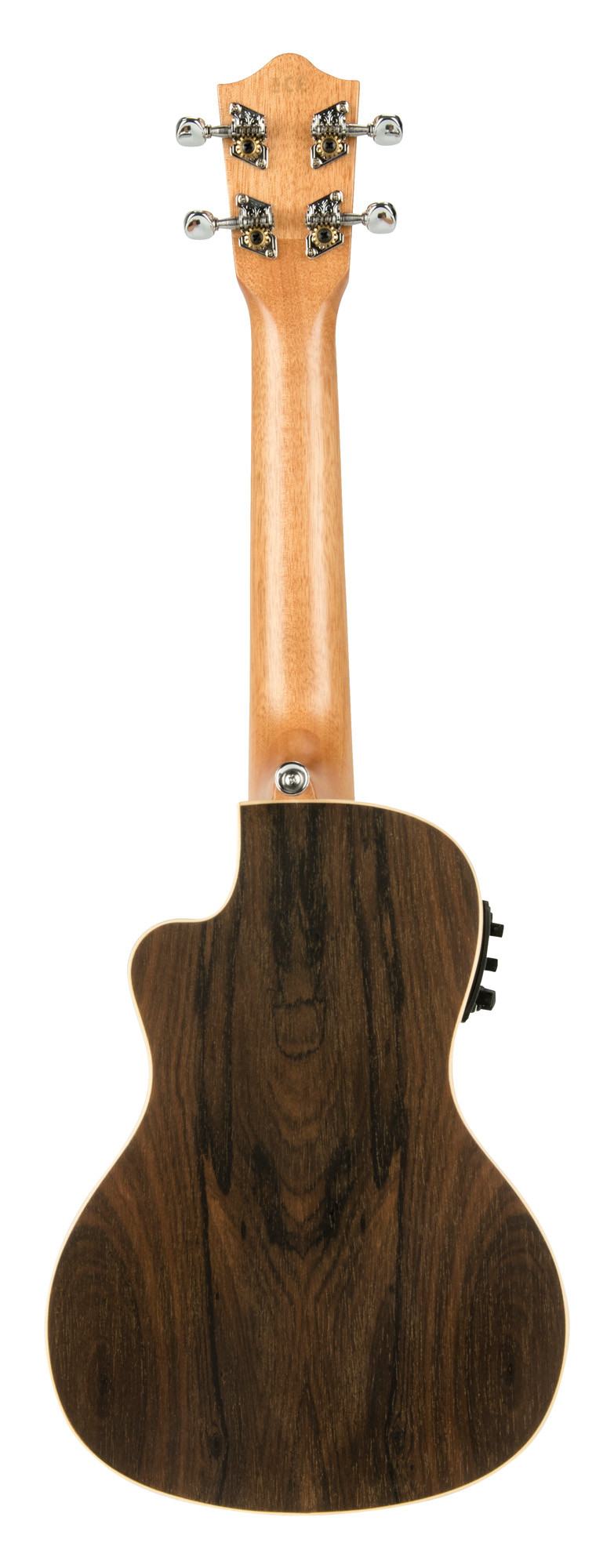 This concert model stands out for its careful design and thoughtfully selected materials. It features a cutaway for easier access to the higher frets, a ziricote top, back and sides, as well as a walnut fingerboard and bridge. The maple binding and rosette provide an elegant finish, while the open-gear tuners ensure classic, practical tuning. It is also equipped with a Fishman Kula EQ system and comes with a 20 mm padded deluxe gig bag.