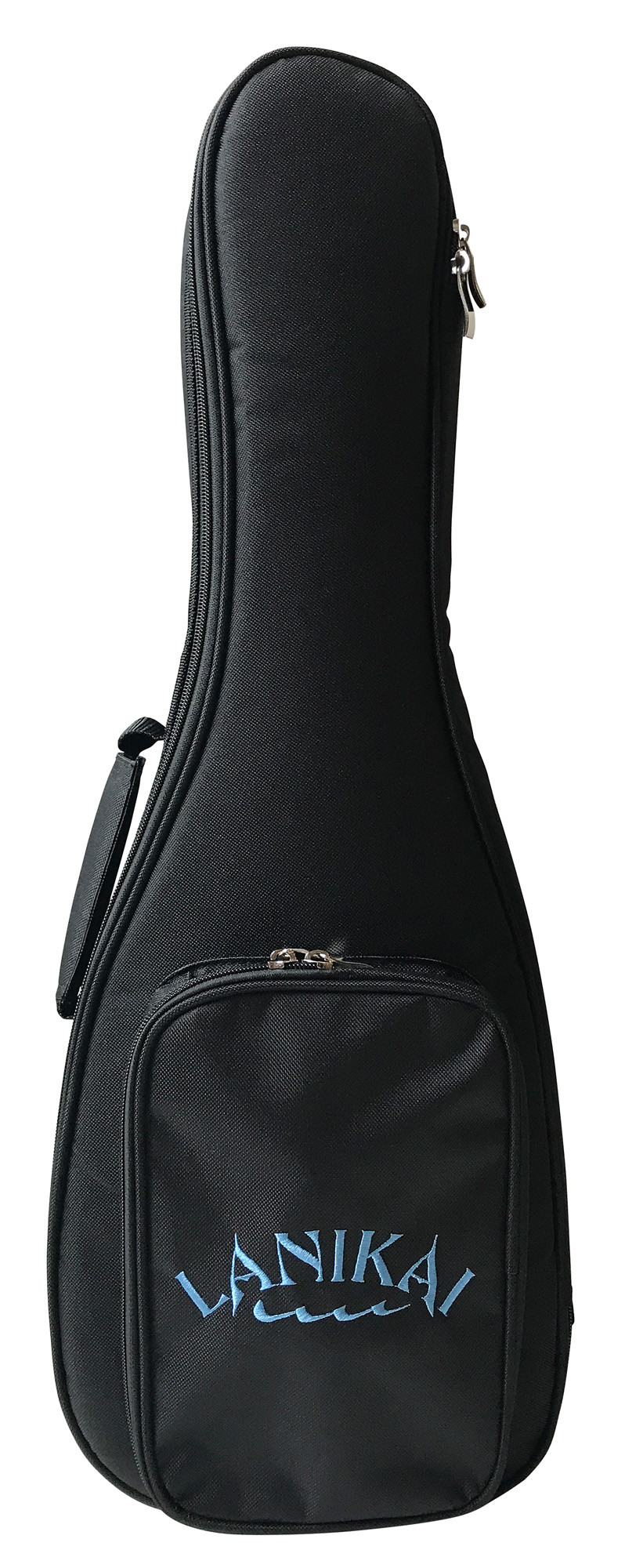 It includes a Lanikai EQ system with volume and tone controls, practical for adapting the sound to playing needs. The finishes include maple binding and rosette, open-gear tuners, as well as a deluxe 20 mm padded gig bag for transport and protection.