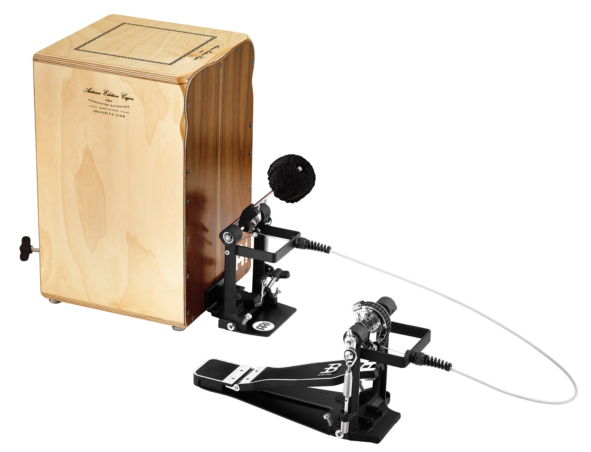 It stands out for its height adjustment, its compatibility with MEINL cajon pedals and standard bass drum pedals, as well as its particularly soft sound output.