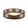 This model combines a wooden body with a hand-selected goatskin head to offer careful construction. Its 2 rows of aluminum jingles provide a sound presence suited to many musical uses. The natural finish highlights the authentic look of the instrument.