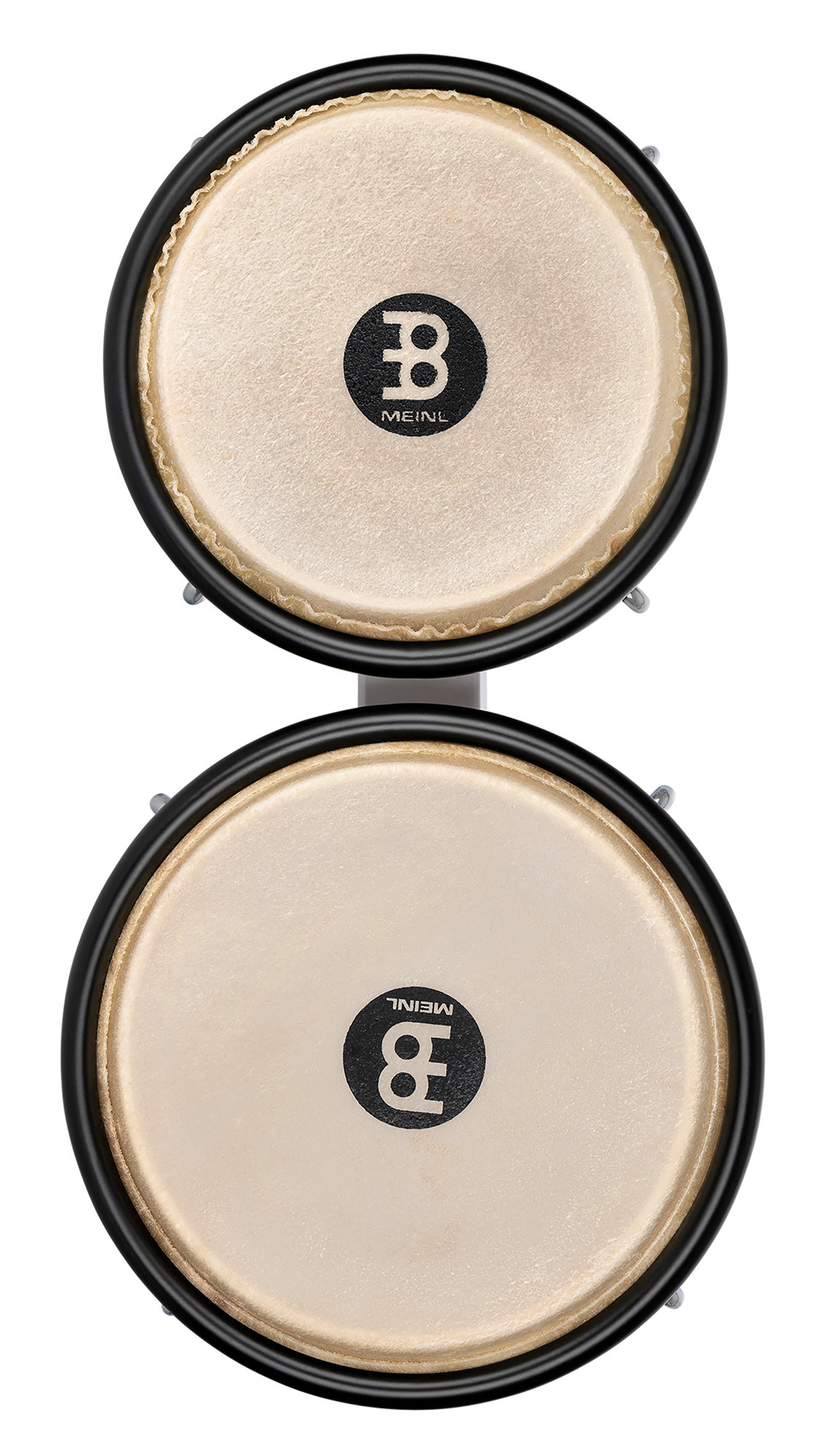 Meinl Journey series bongos with buffalo heads and white ABS shells, in 6.5" and 7.5" sizes.