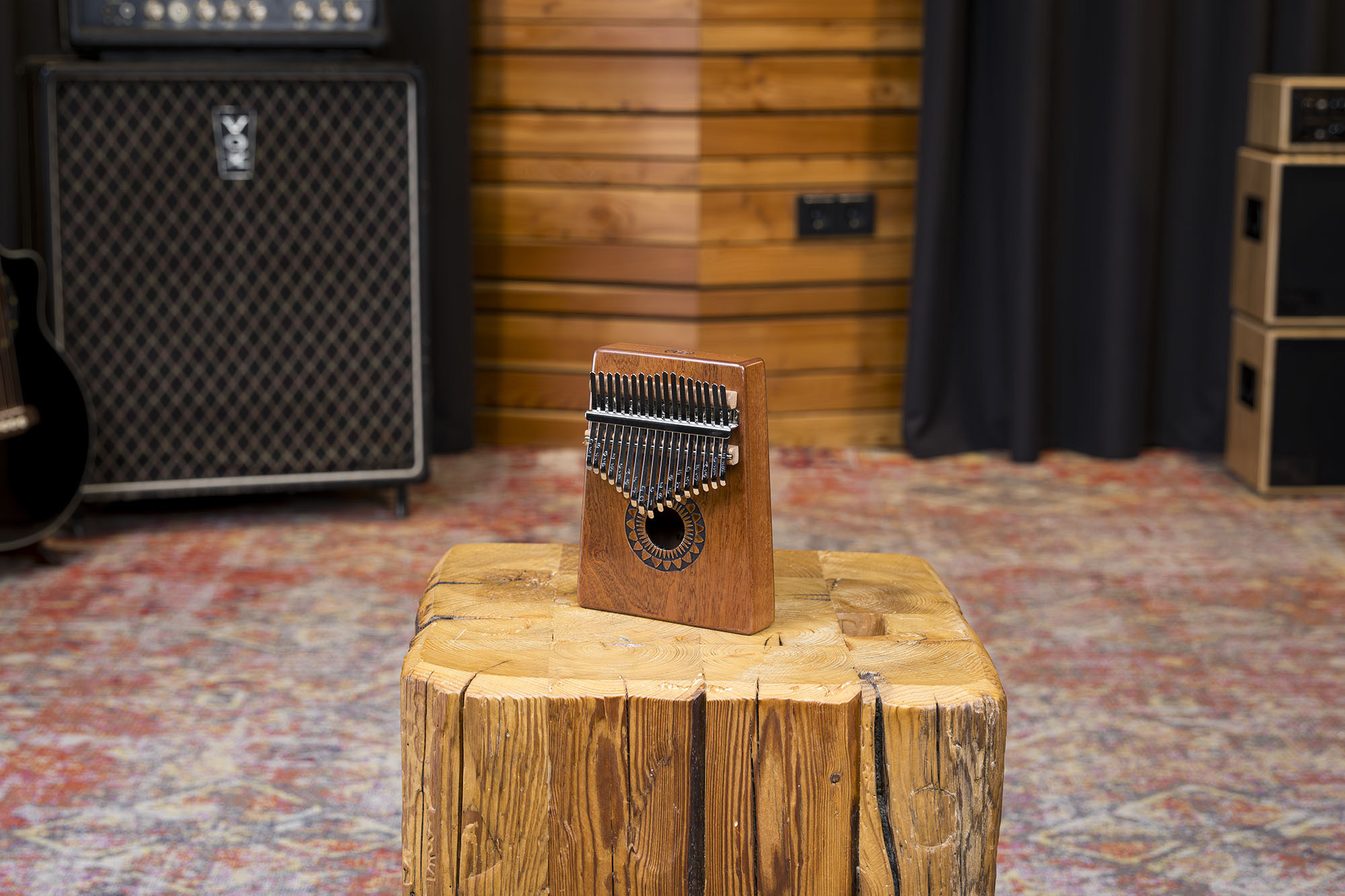This Meinl kalimba offers a soft, pleasant tone, with a C major scale and 17 notes for playing varied melodies. Its acacia body and Sun design make it both attractive and practical. It comes with a case, a cleaning brush, and a tuning hammer for maintenance and tuning.