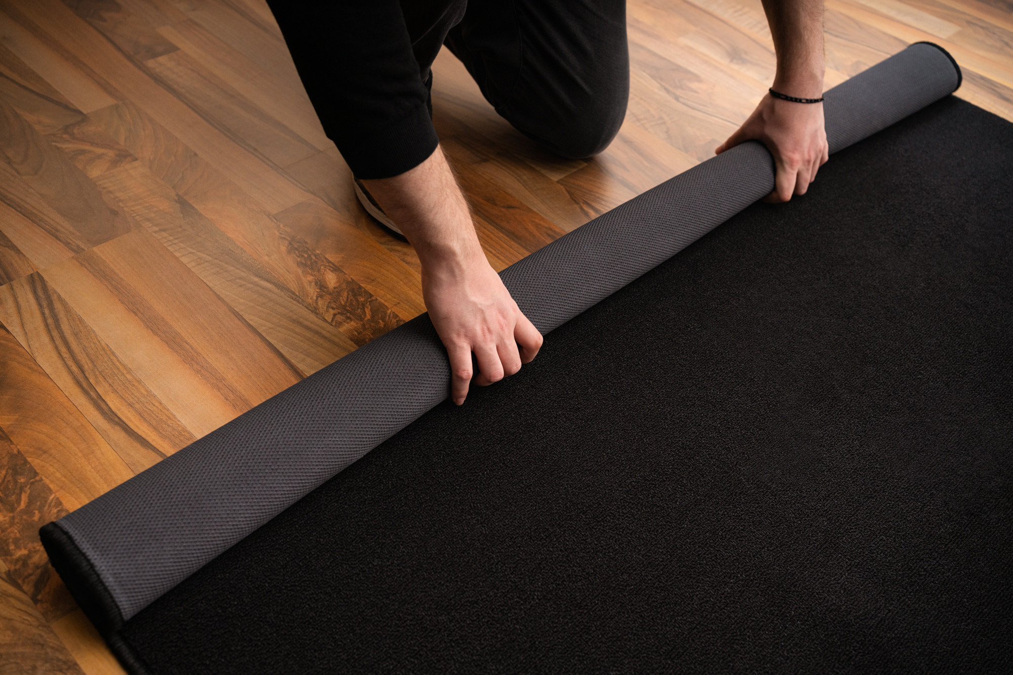 This rug offers a 180 x 200 cm format and a black finish, with a black and white style indicated for the Small version. It helps organize the playing area in a clear and tidy way.