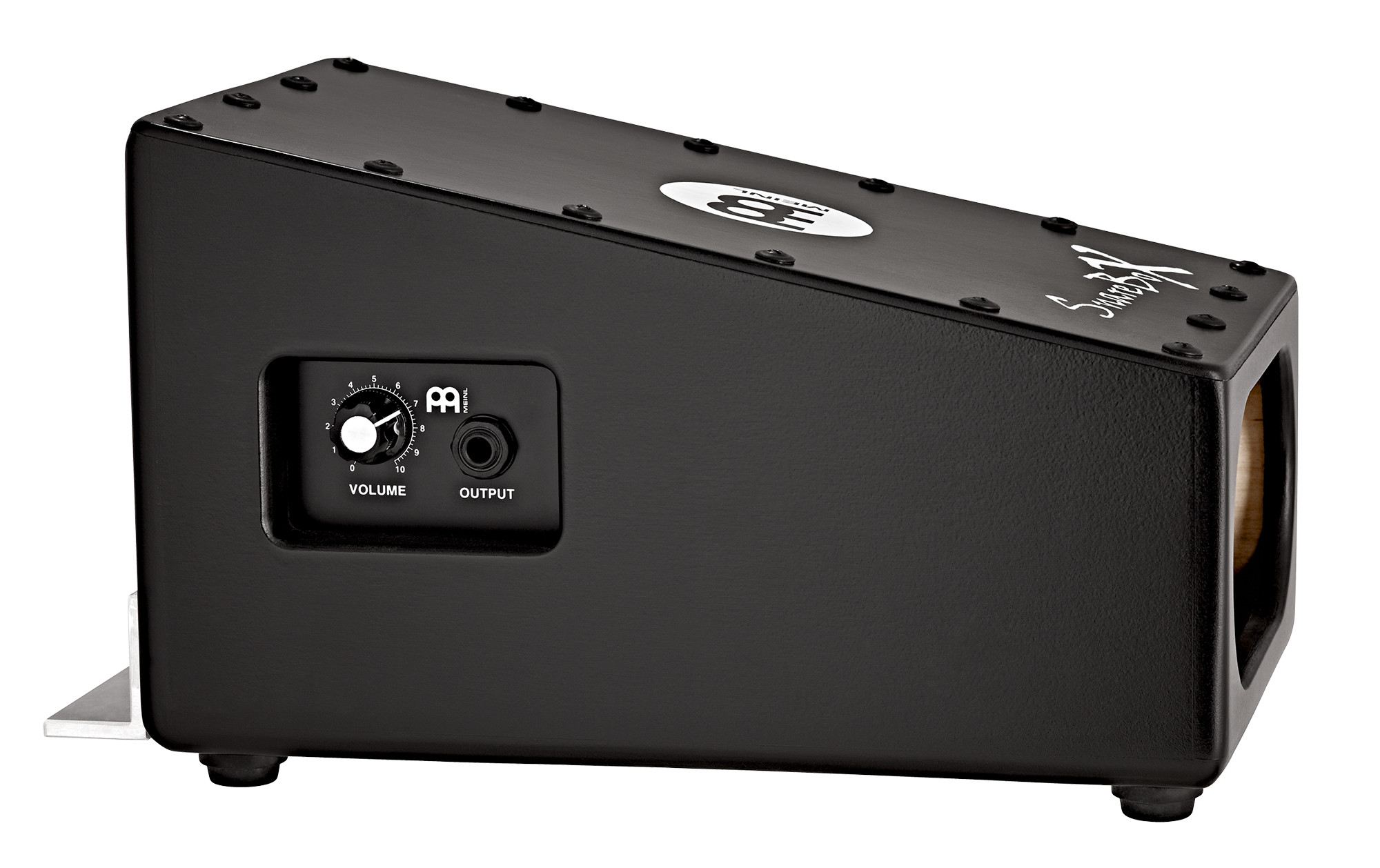 The Meinl pre-amplified Snarebox is designed to deliver a clear, punchy sound, with a birch resonance chamber and a piezo preamp with jack output. Its front port promotes better projection, while its aluminum mounting rail and included L-shaped foam beater allow easy use with a standard pedal.
