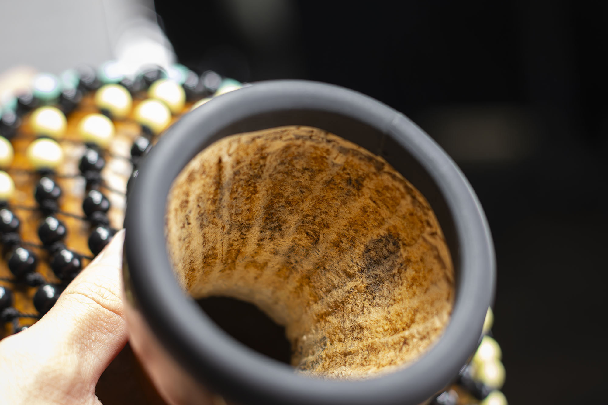 Traditional gourd-shaped shekere, Medium size.